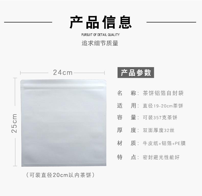 White unprinted/357g tea cake bag (aluminized ordinary), White unprinted/357g tea cake bag (pure aluminum), Wh...