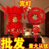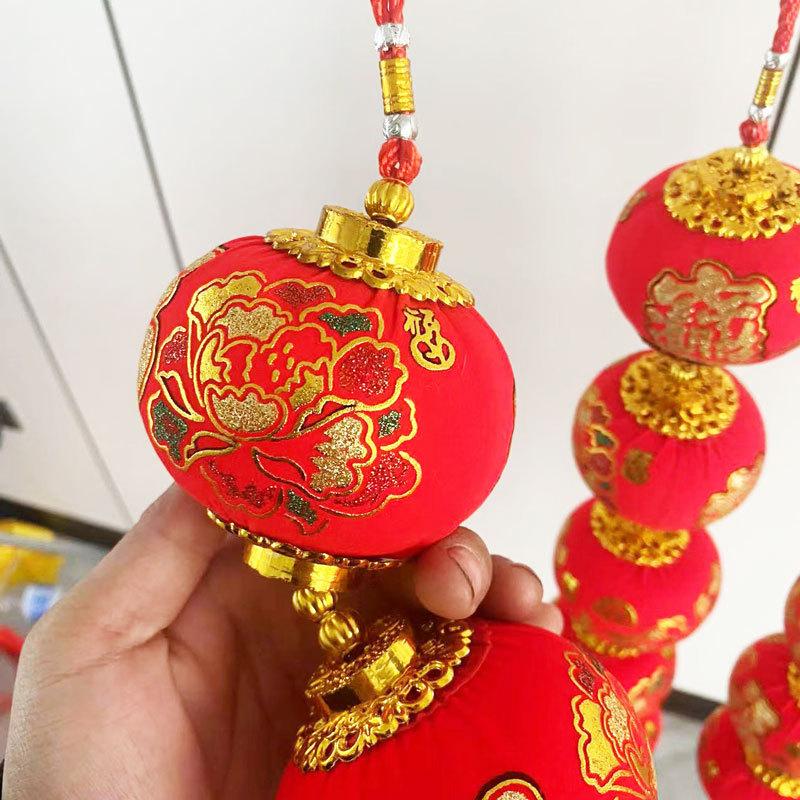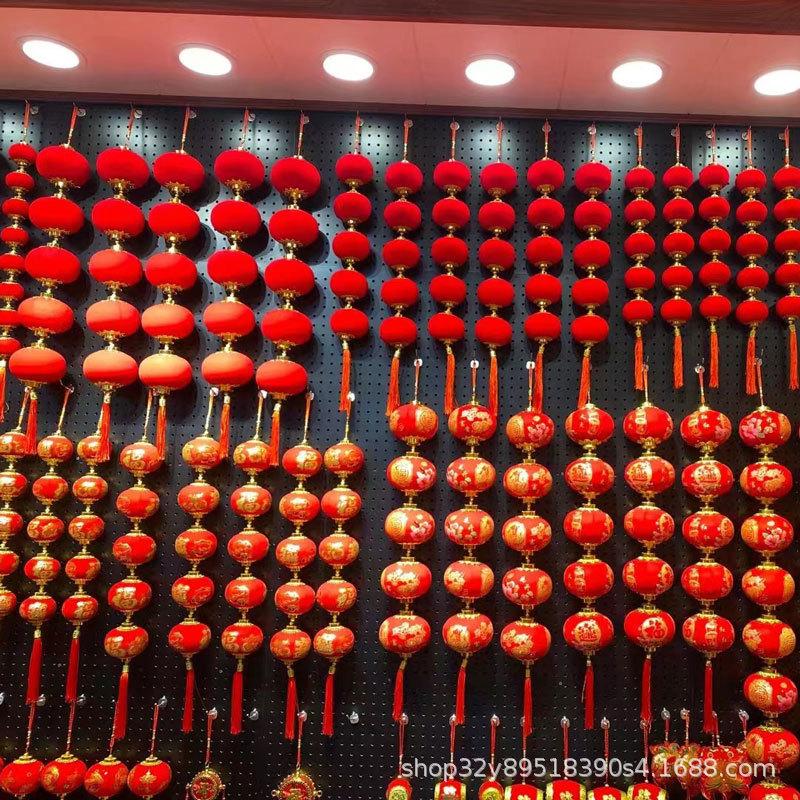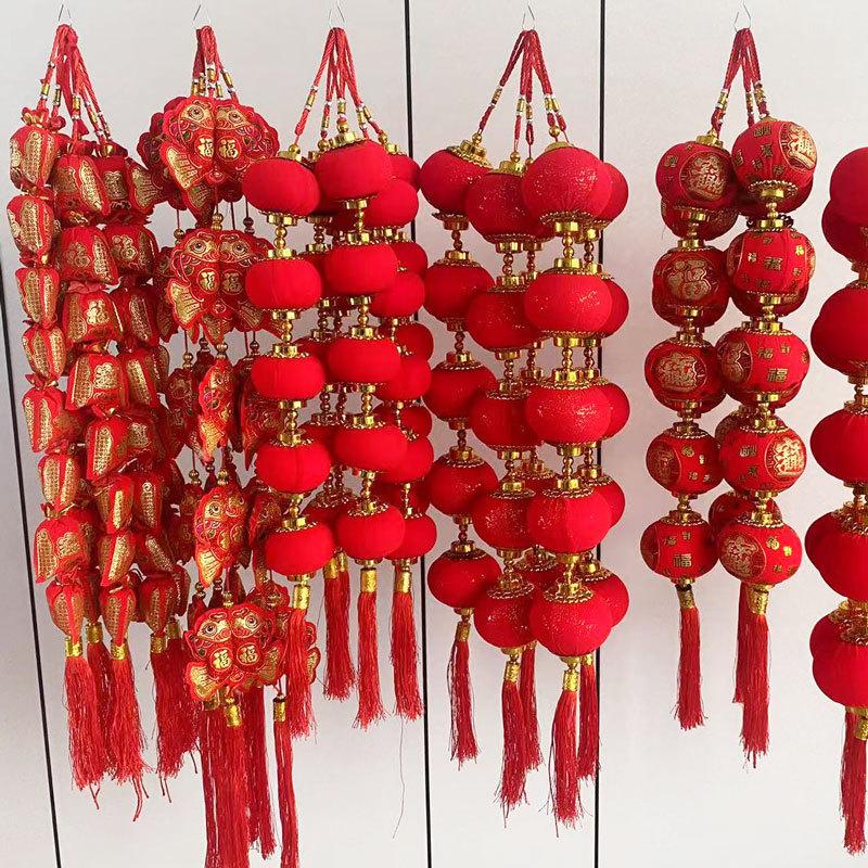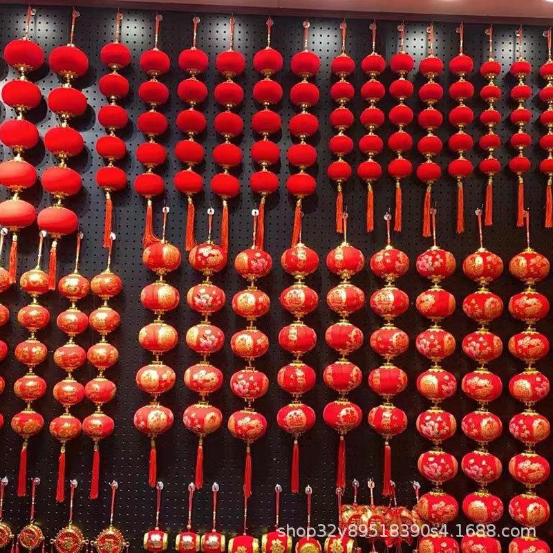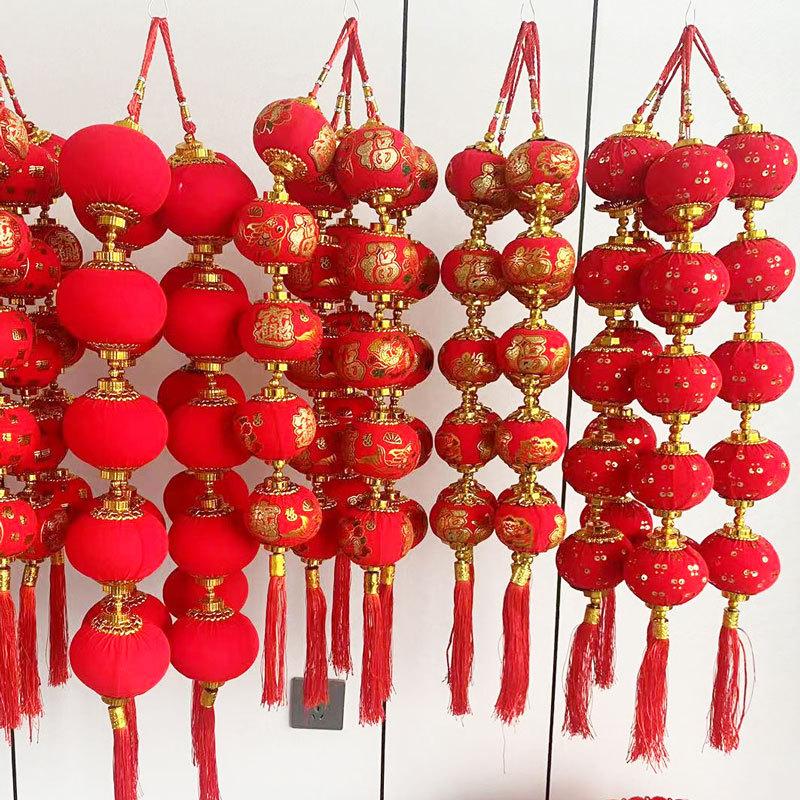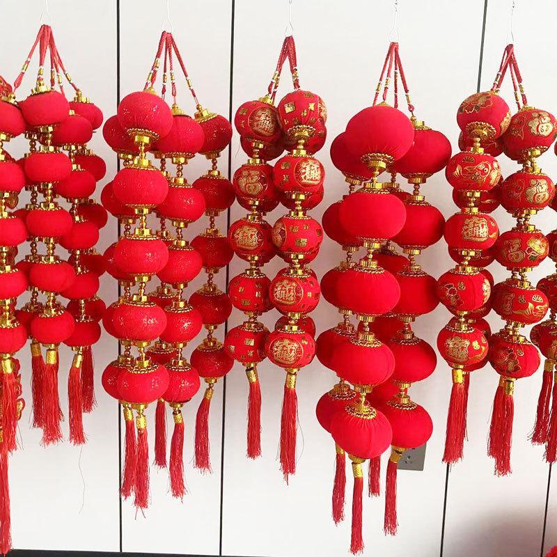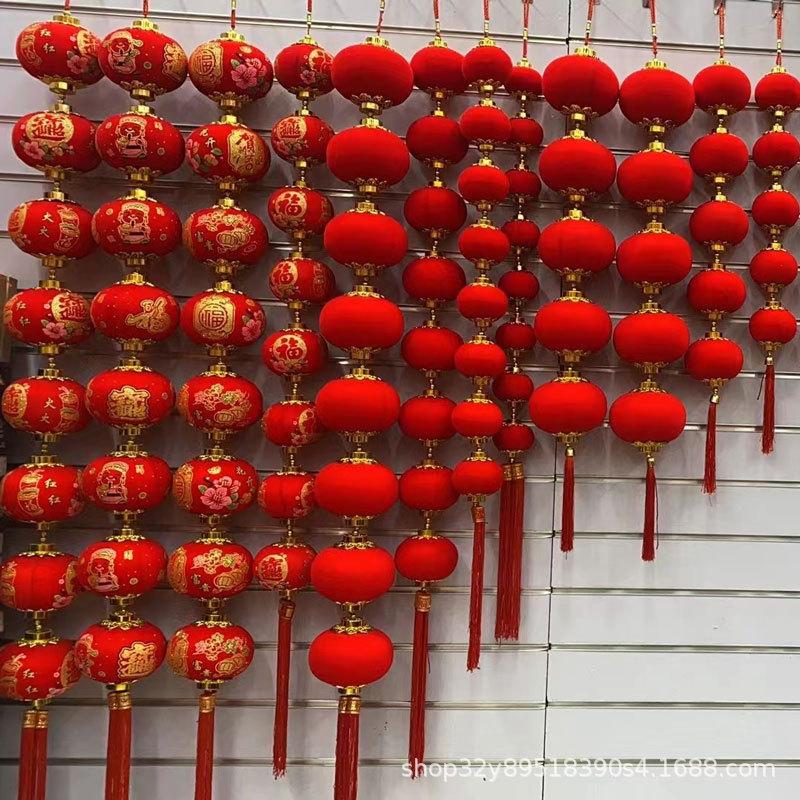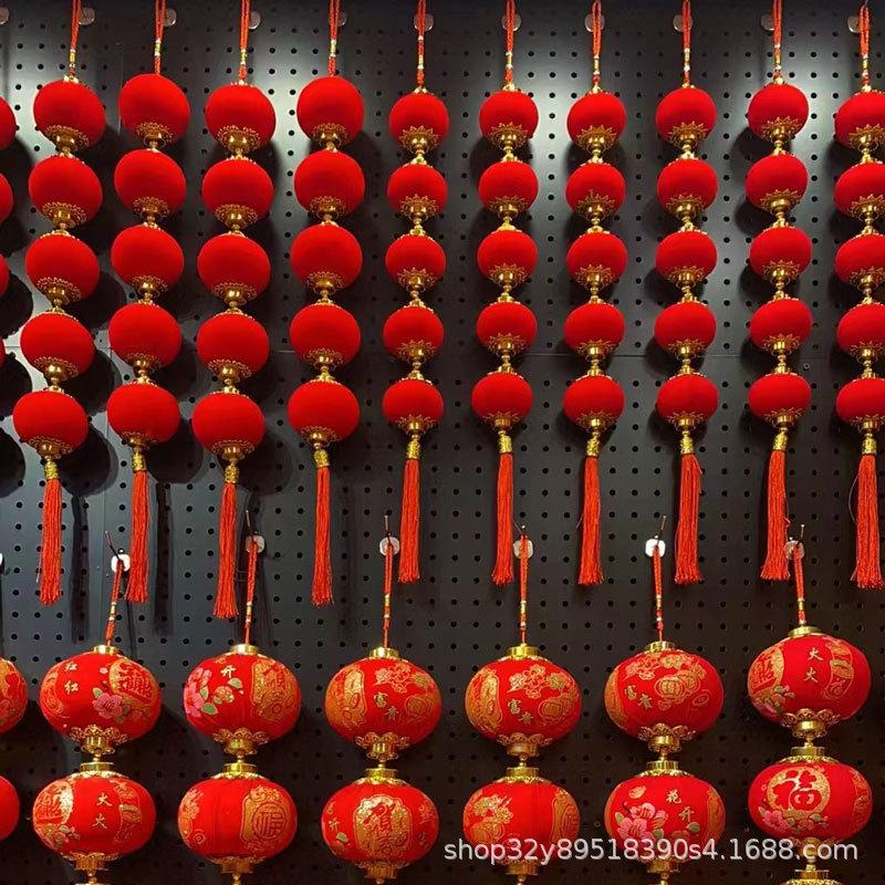 Cadena de linternas rojas con flocado, colgante decorativo para el festival de primavera de Año Nuevo, linterna pequeña, decoración colgante, diseño de escena interior, linterna colgante
