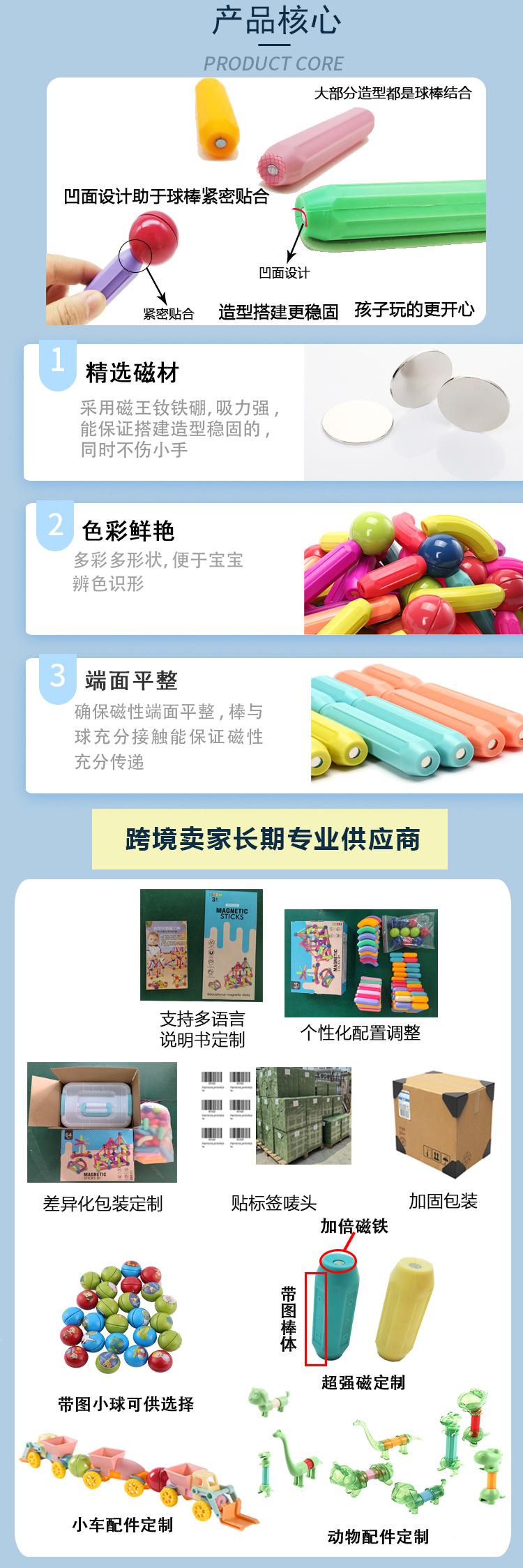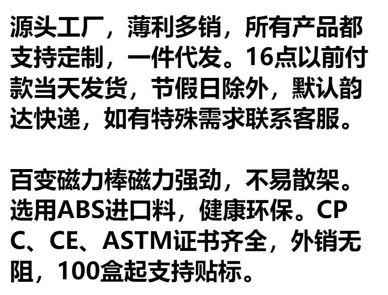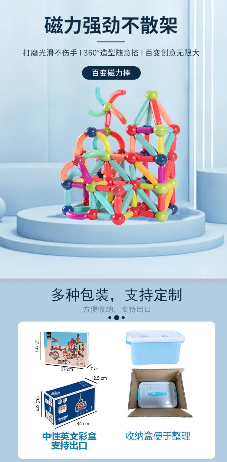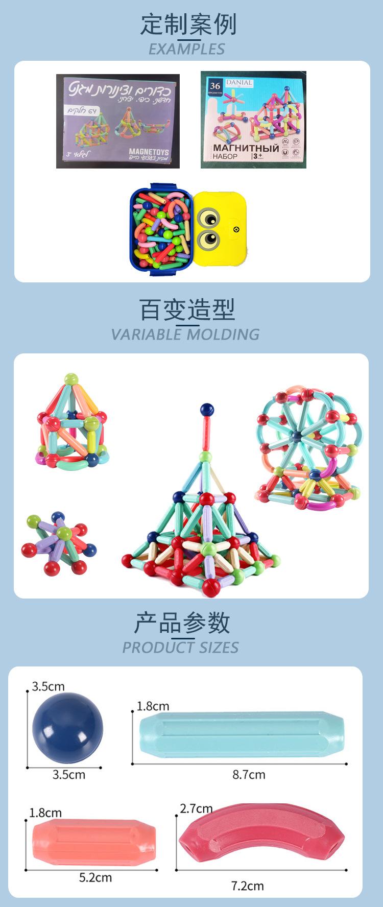Venta al por mayor de palitos magnéticos transfronterizos juguetes educativos para niños imán fuerte bloques de construcción magnéticos juguetes palito magnético caja de color