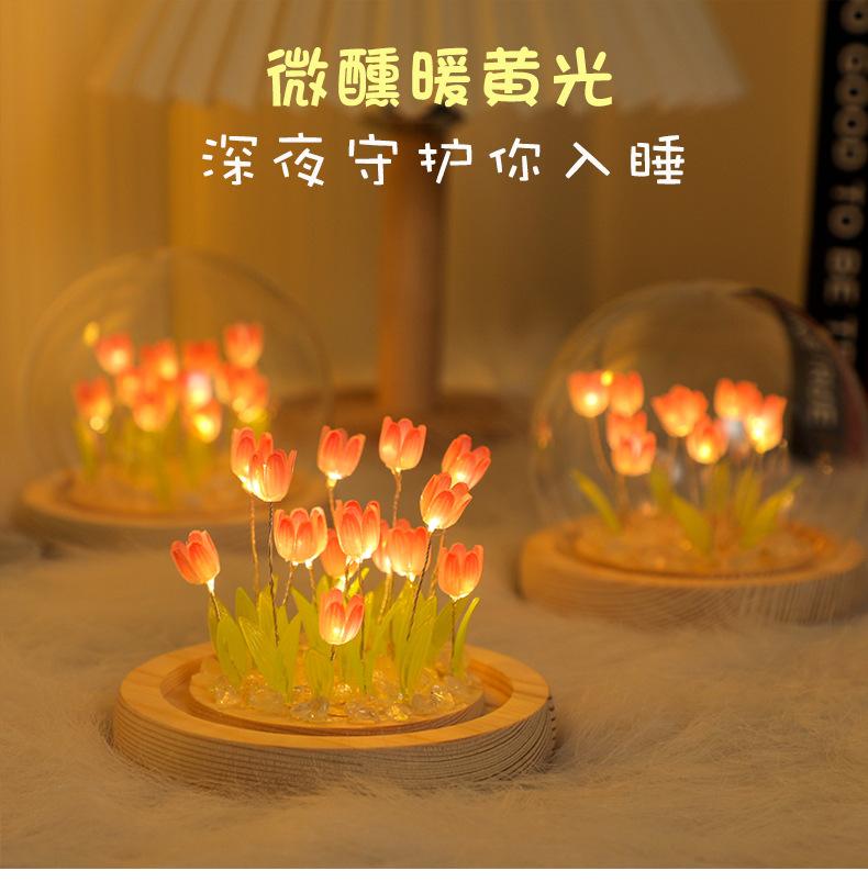 Ramo de Tulipanes Luz Nocturna Materiales DIY Adornos Creativos Hechos a Mano Lámpara de Ambiente Regalos para Estudiantes para Niñas y Mejores Amigas