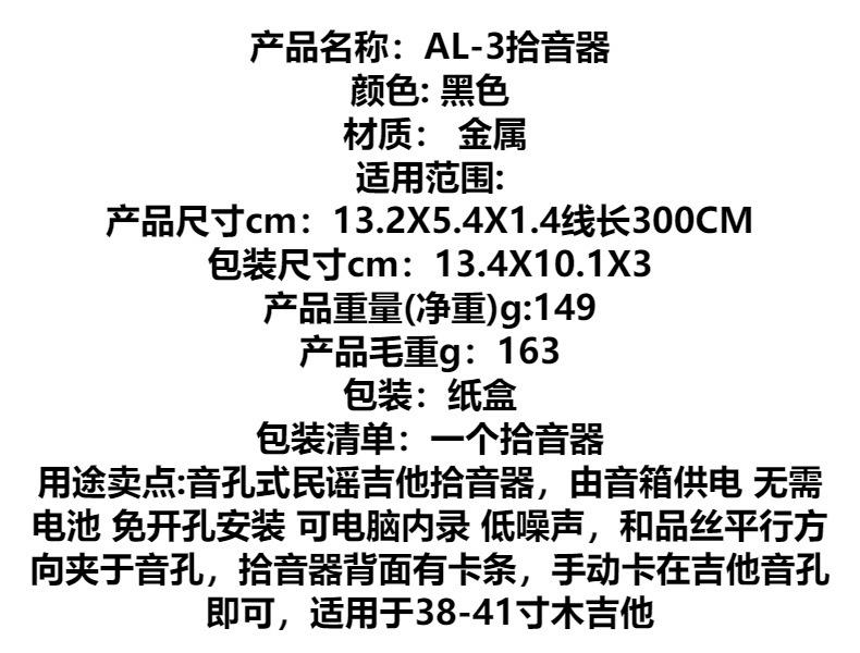 Pastilla de guitarra acústica AL-3 de 38-41 pulgadas con orificio libre para el sonido, accesorios para instrumentos musicales al por mayor