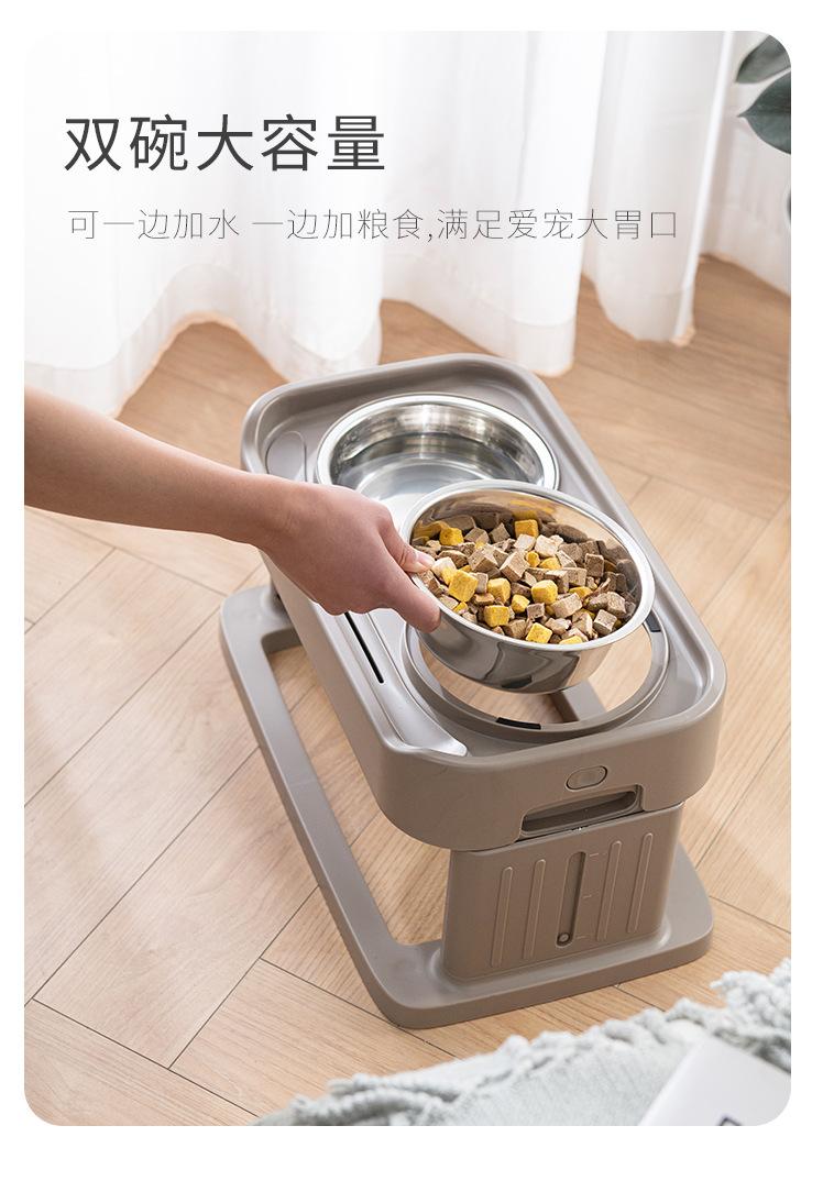 Popular Transfronterizo Ajustable Elevación Acero Inoxidable Mascota Doble Tazón Tazón para Gato y Perro Desmontable Gran Capacidad Tazón para Comida