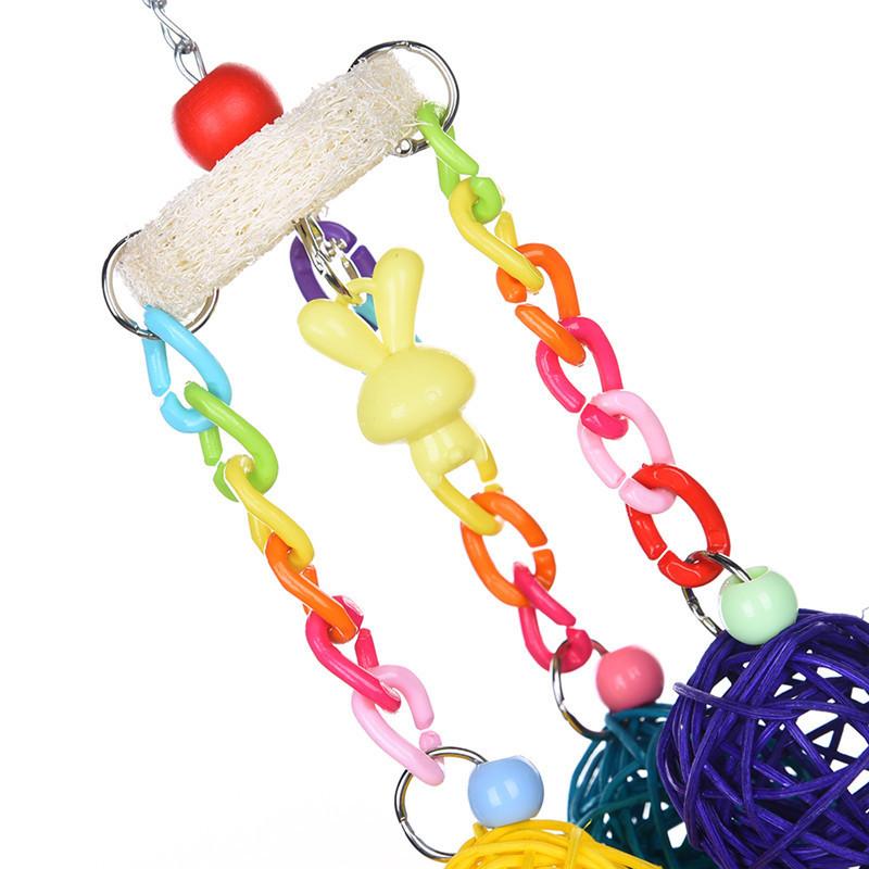 Columpio de madera para loros, lufa, juguete para morder, bola de ratán, cuerda, suministros para pájaros, accesorios para jaulas de pájaros, juguete para loros