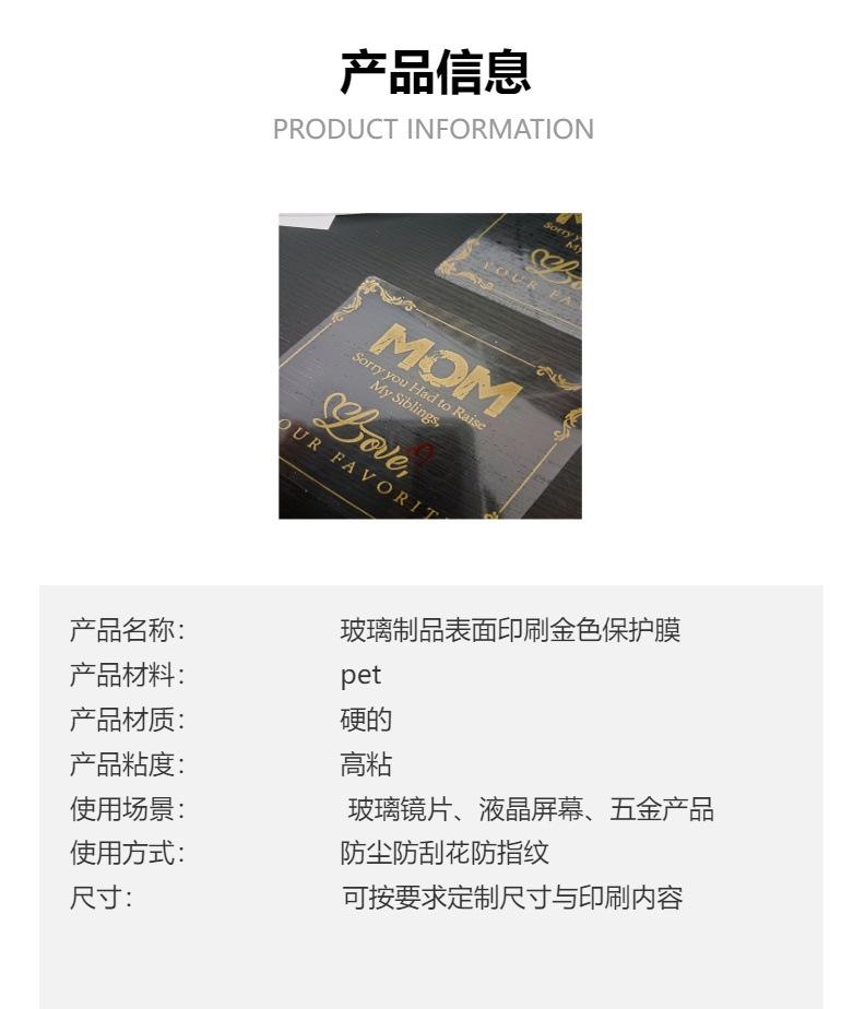 Productos de Vidrio, Impresión Superficial, Película Protectora Dorada, Logotipo Antiarañazos y Antipolvo, Suministro Transfronterizo, Mascota Alta Viscosidad