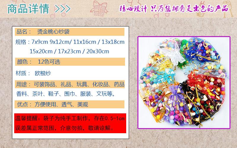 【Nombre del producto】: Estampado en caliente con lámina dorada y plateada corazones de duraznoBolsas de organza/bolsas para joyas/bolsas para empaque de regalos/bolsas para dulces de boda/bolsas de cosméticos/bolsas promocionales