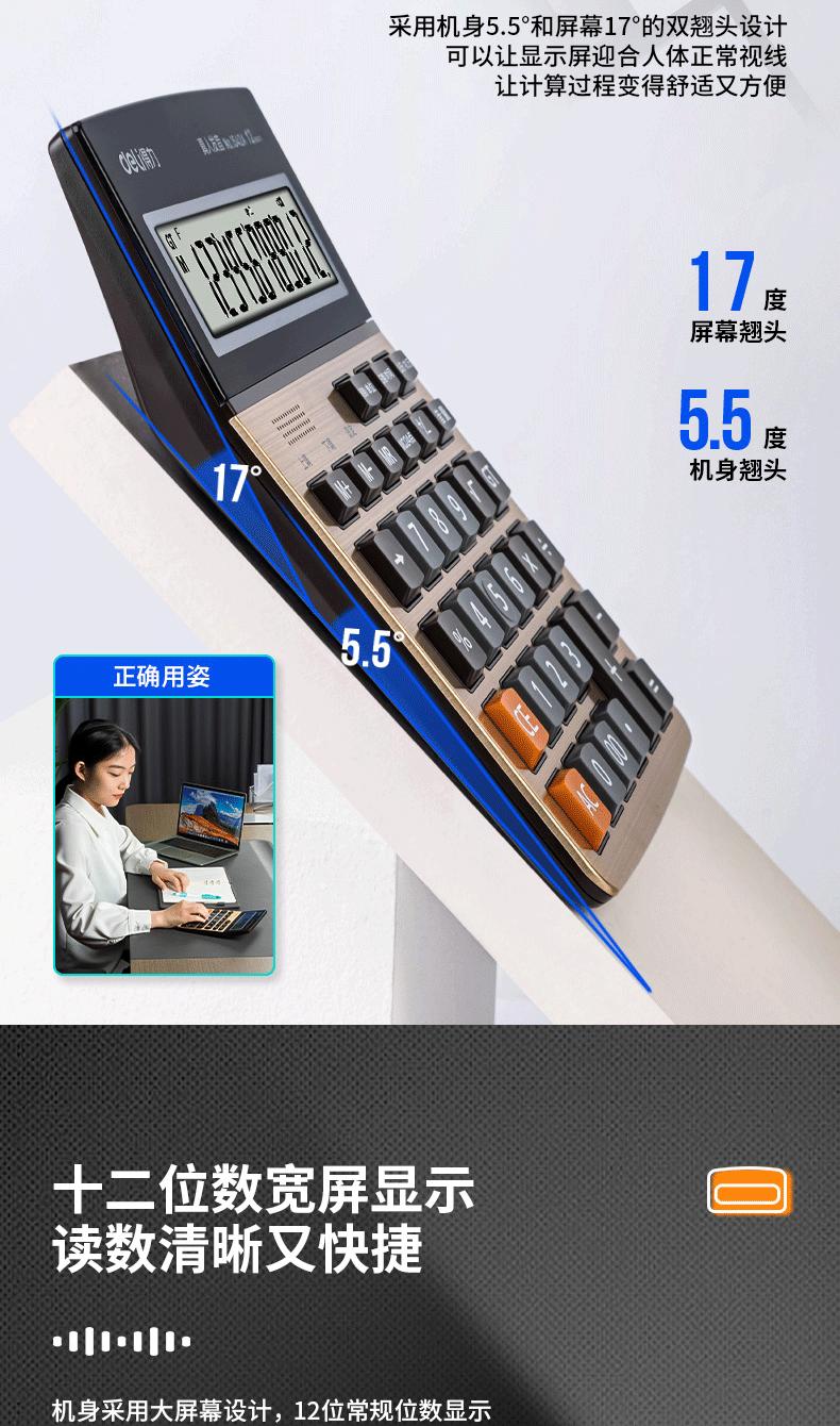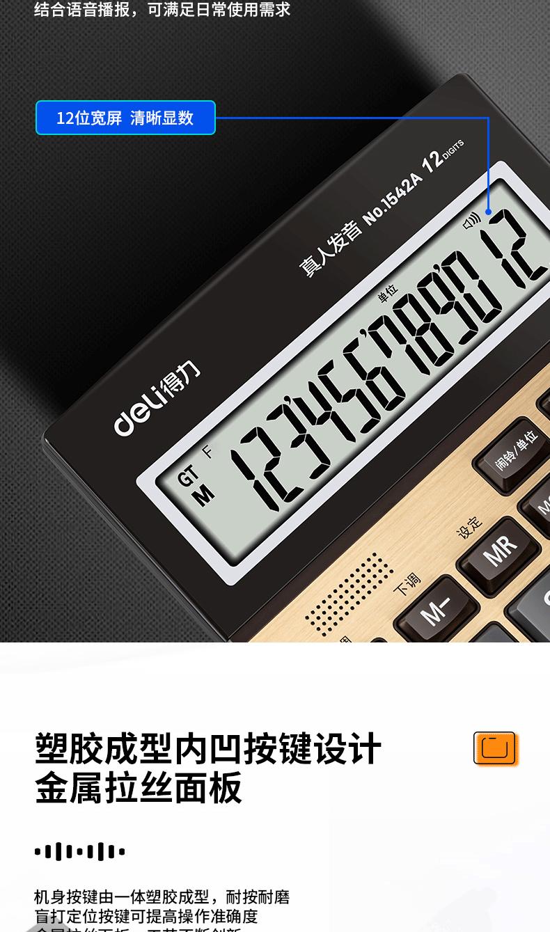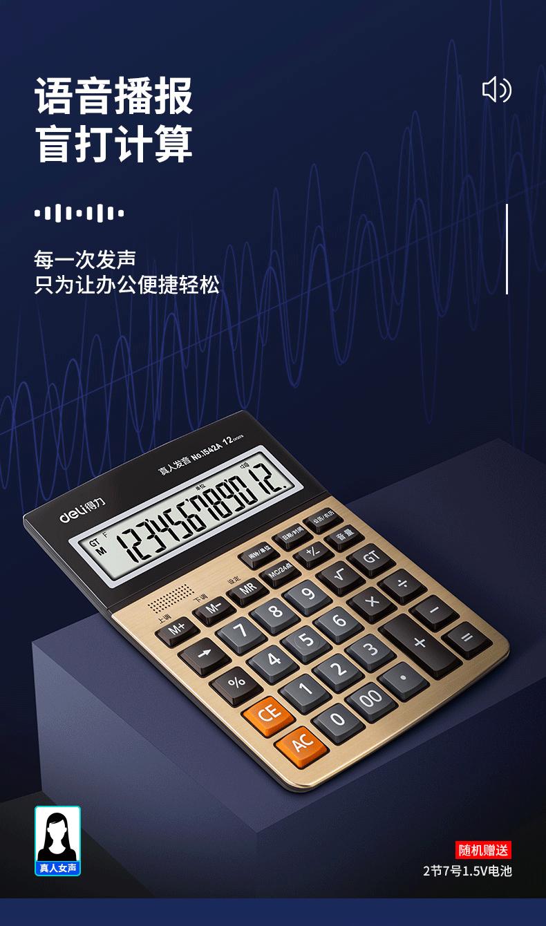 Calculadora de Voz Deli 1542A 12 Dígitos Pantalla Grande Voz Humana Computadora Oficina Negocios Uso Financiero