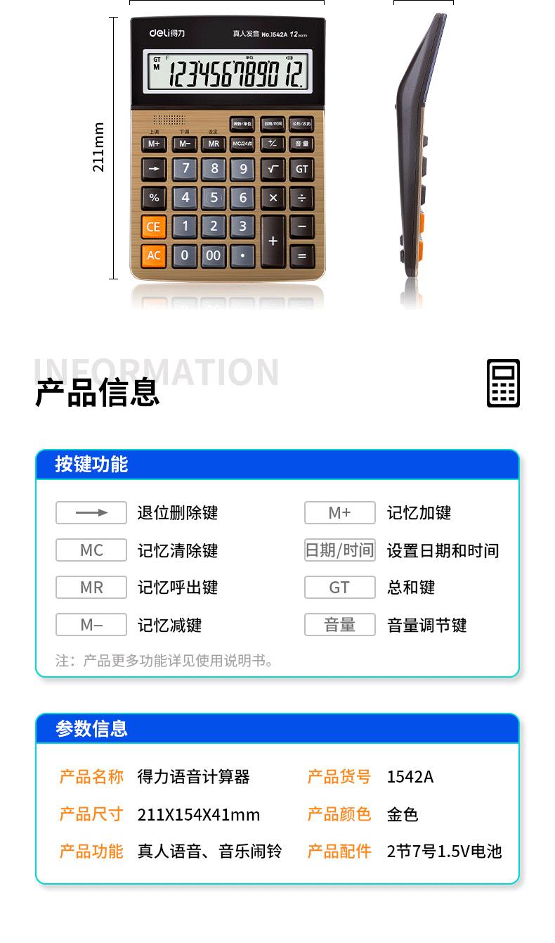 Deli 1542A Voice Calculator (Gold) (PCs)