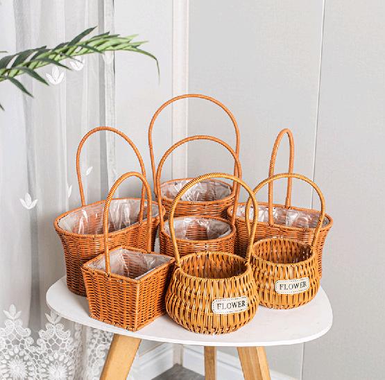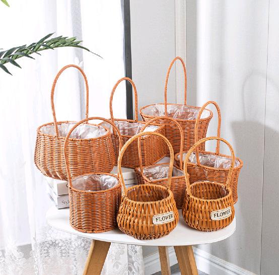 Cesta tejida para regalo, cesta de bambú, cesta portátil para arreglos florales, cesta de ratán para flores secas, cesta para niños, cesta de paja hecha a mano.