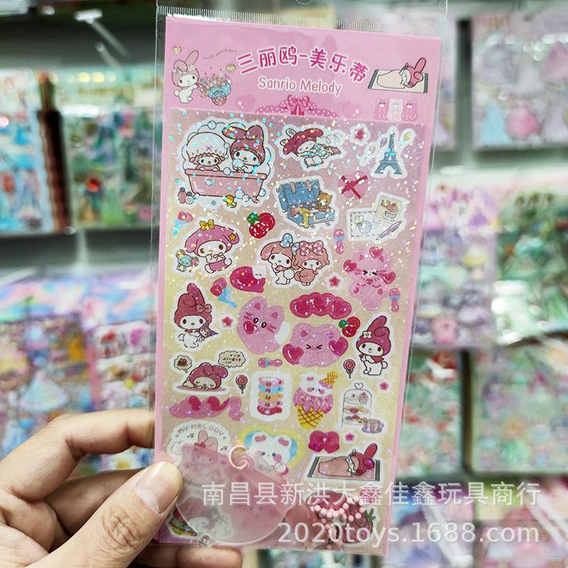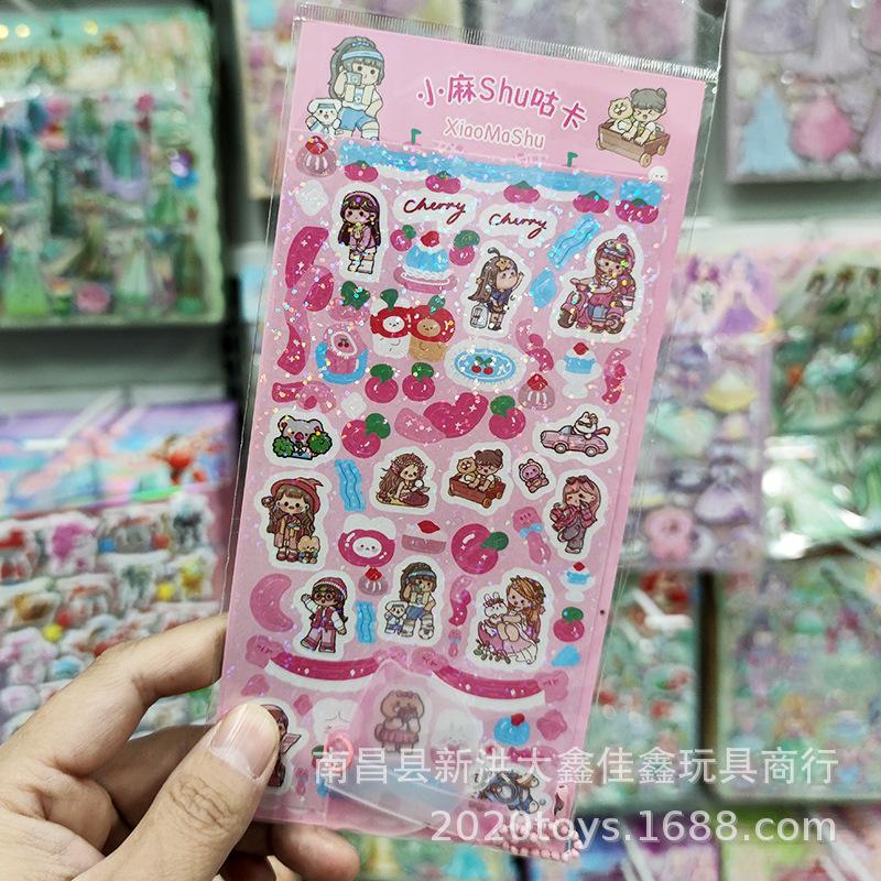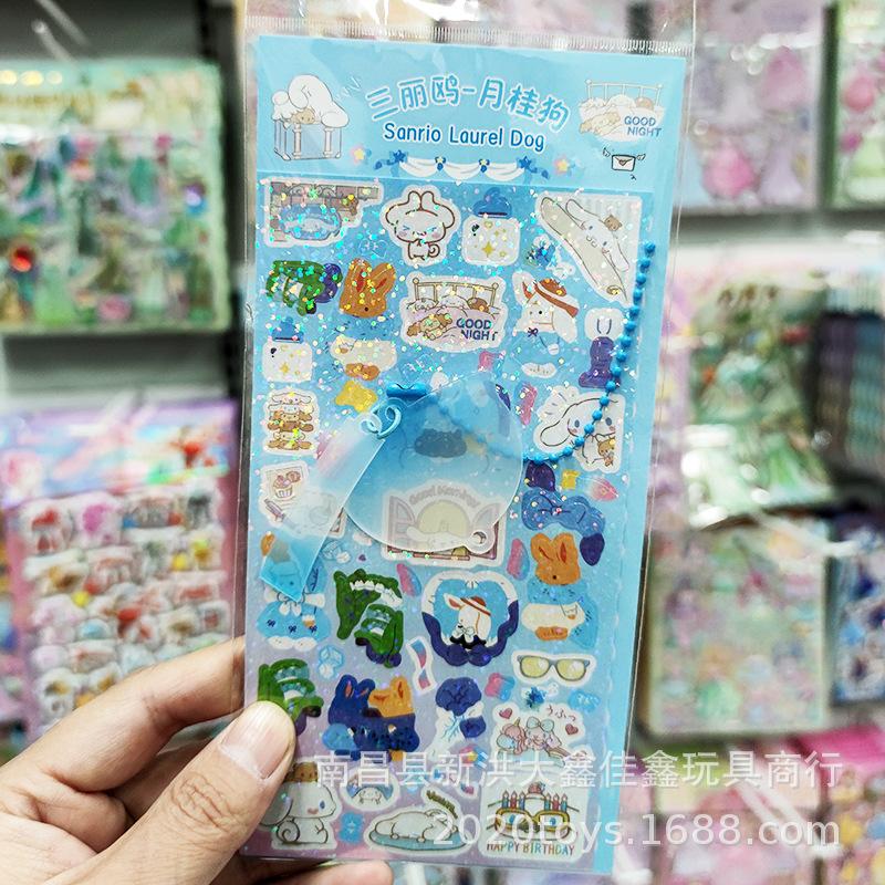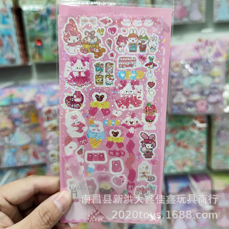 Juego de pegatinas de cuenta de mano con tarjeta Goo de campana de viento, pegatinas de dibujos animados para niños, pegatinas de recompensa para niñas