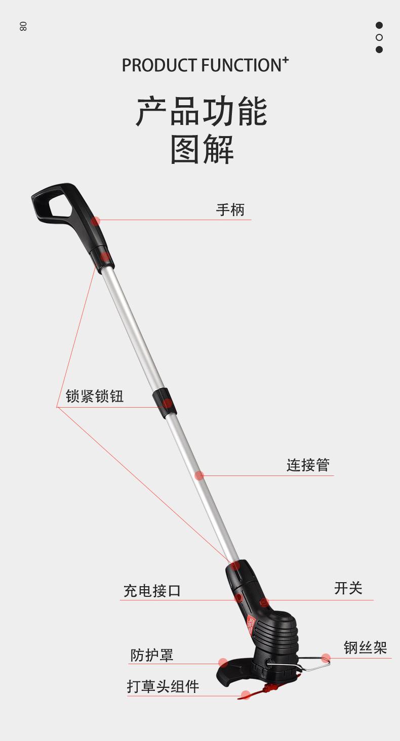 Con manual de instrucciones, adaptador, 20 cuchillas de corte, tubo de aluminio retráctil y unidad principal