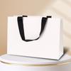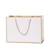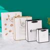 Bolsa de papel de regalo de mano, universal, de color sólido, blanca, con logotipo bronceado, para ropa, té, venta al por mayor
