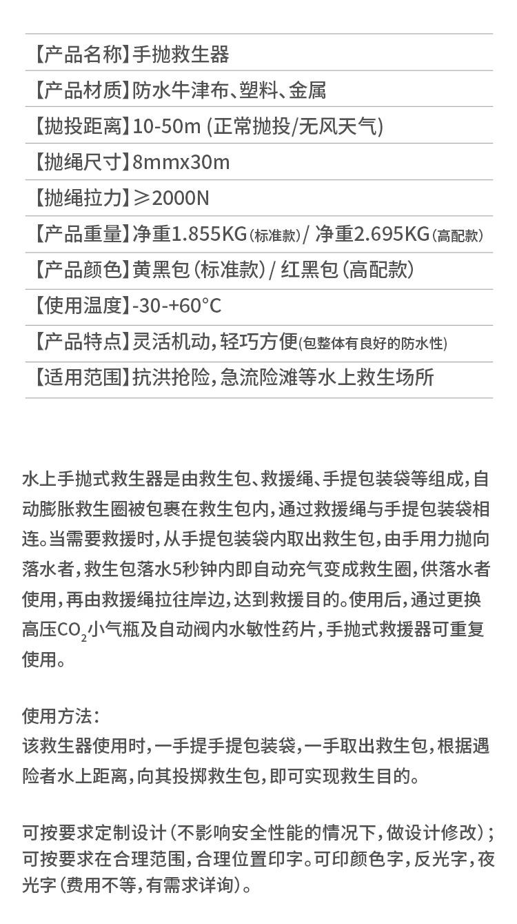 Lanzamiento portátil automático salvavidas rescate acuático lanzamiento manual equipo salvavidas gran flotabilidad flexible multiusos