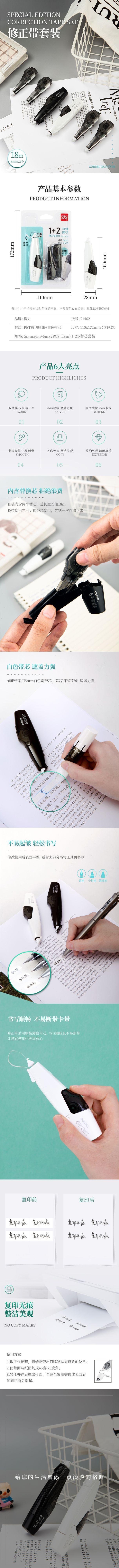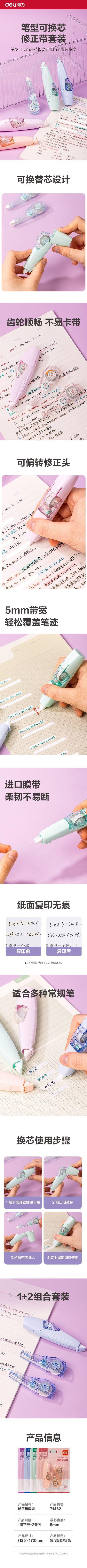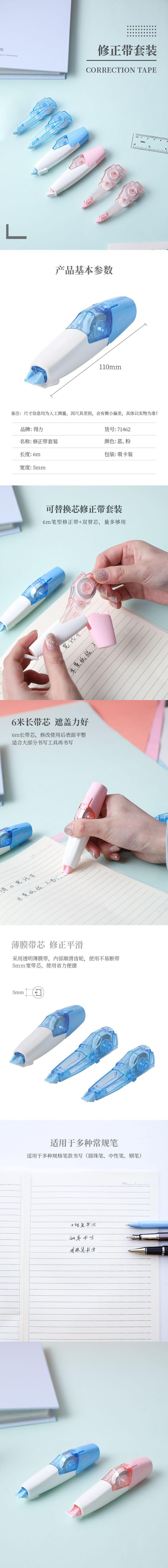 Cinturón corrector Deli, núcleo reemplazable, bolígrafo para estudiantes, cinturón corrector, cinturón corrector para tareas, cinturón corrector, papelería al por mayor