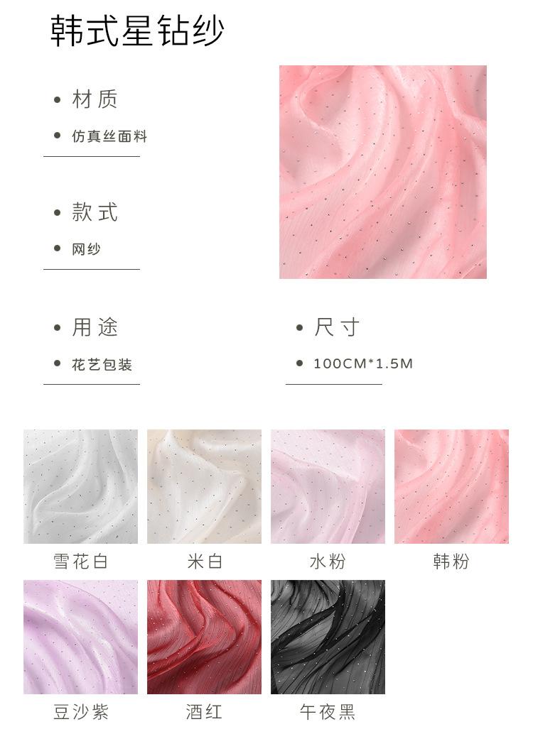 Tela de seda material floral de embalaje Hilo de diamante estrella coreano brillo fino Sentido alto hilo para envolver ramos material para envolver flores