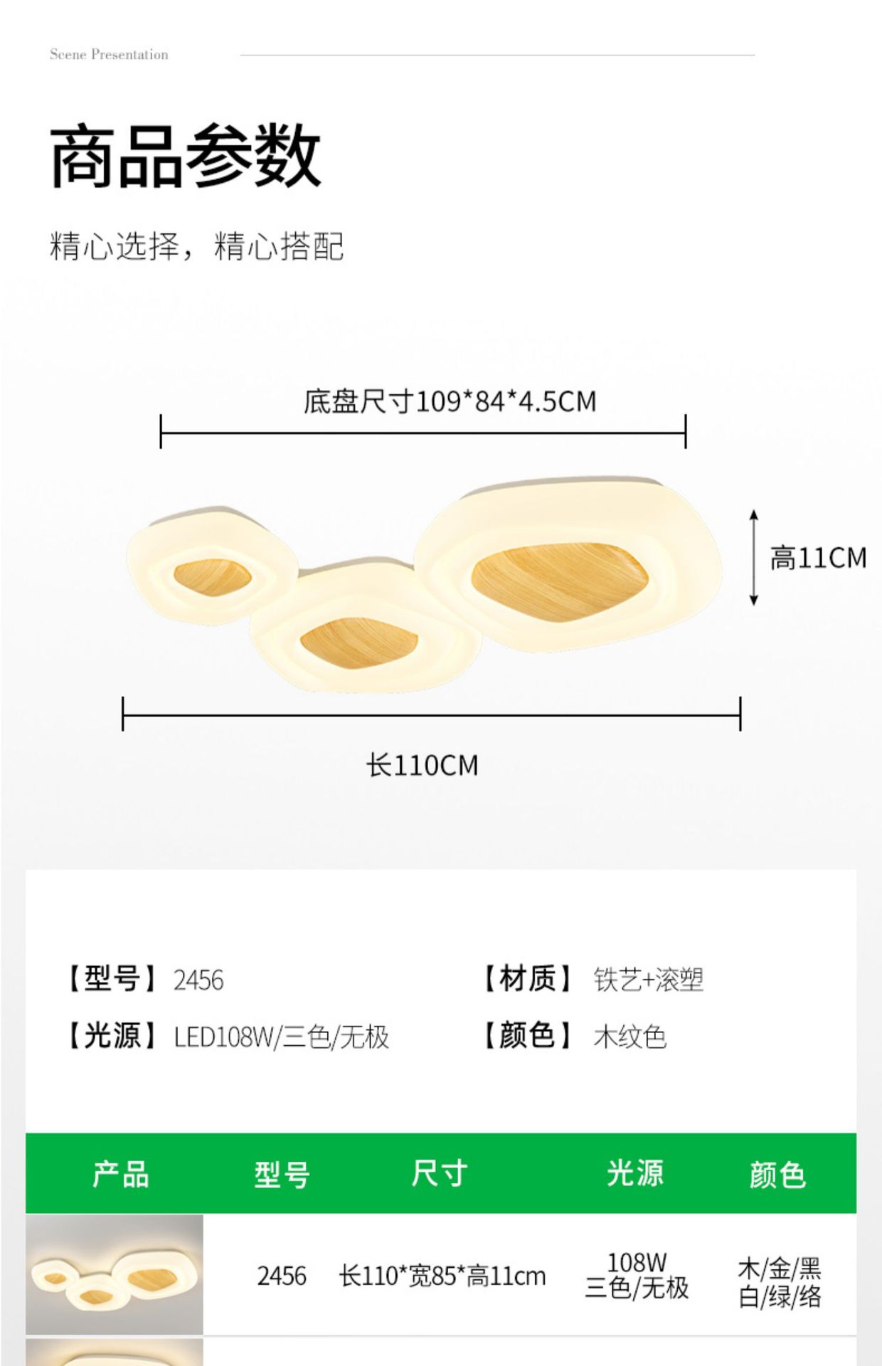2456-milky white-110cm-electrodeless Tmall 108W-Full Spectrum