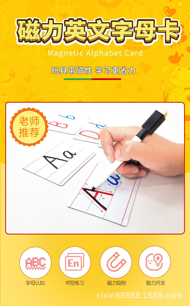 Tarjeta magnética de 26 letras en inglés para niños, material didáctico de inglés, pegatinas magnéticas, juguetes educativos para educación temprana.