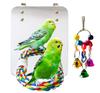 Juguete para morder de loro, espejo de pájaro, espejo grande, cuerda de algodón, soporte de barra, juego de 2 piezas
