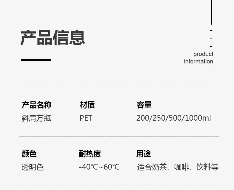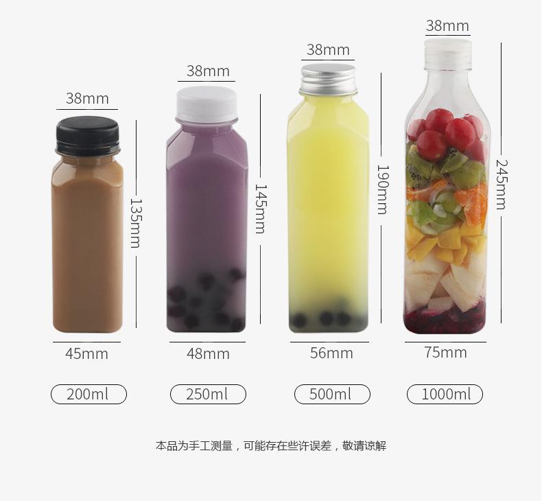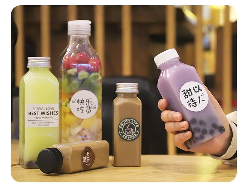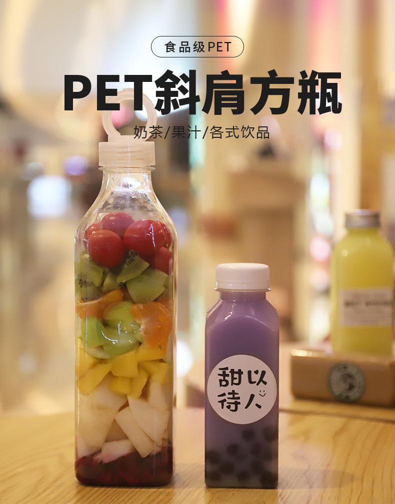 Botella Cuadrada Nueva de Gran Capacidad para Hombro Oblicuo Vaso Creativo Desechable para Té con Leche para Mascotas Botella para Bebidas Vaso de Plástico para Té con Leche