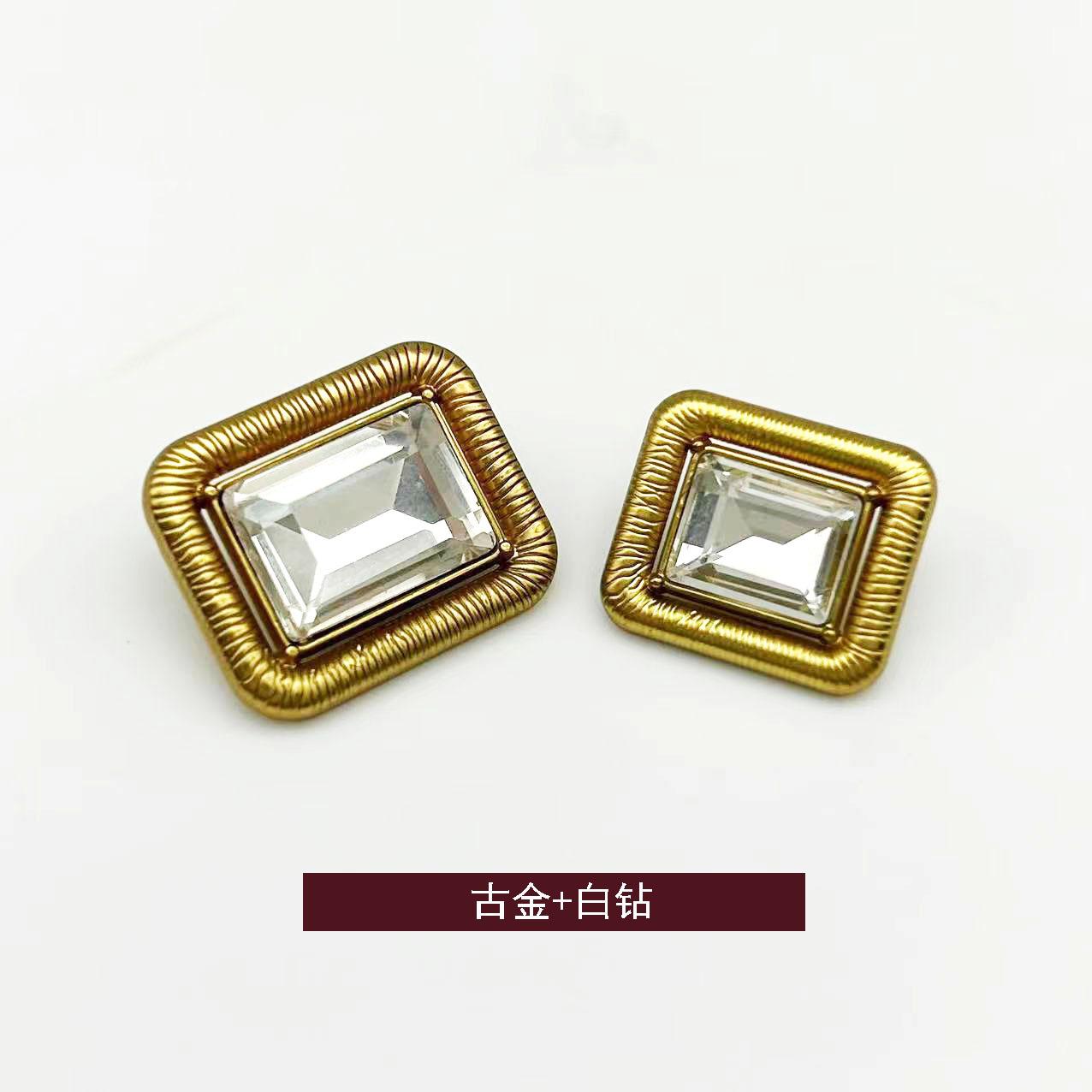 28L = 18.0MM * rectangle * ancient gold white diamond * electroplating color