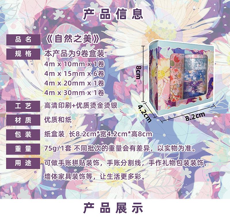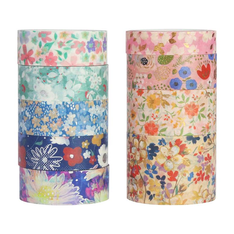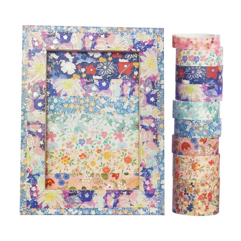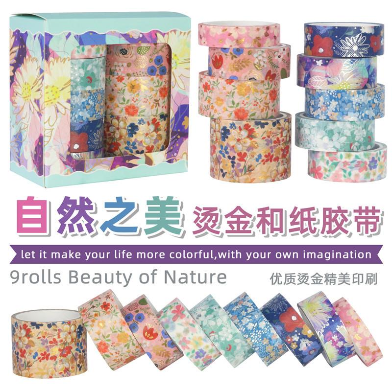 Suministro de Comercio Exterior: Belleza Natural Floral Cinta Washi de Lámina Dorada y Plateada Decoración DIY Planificador Pegatinas Transfronterizas