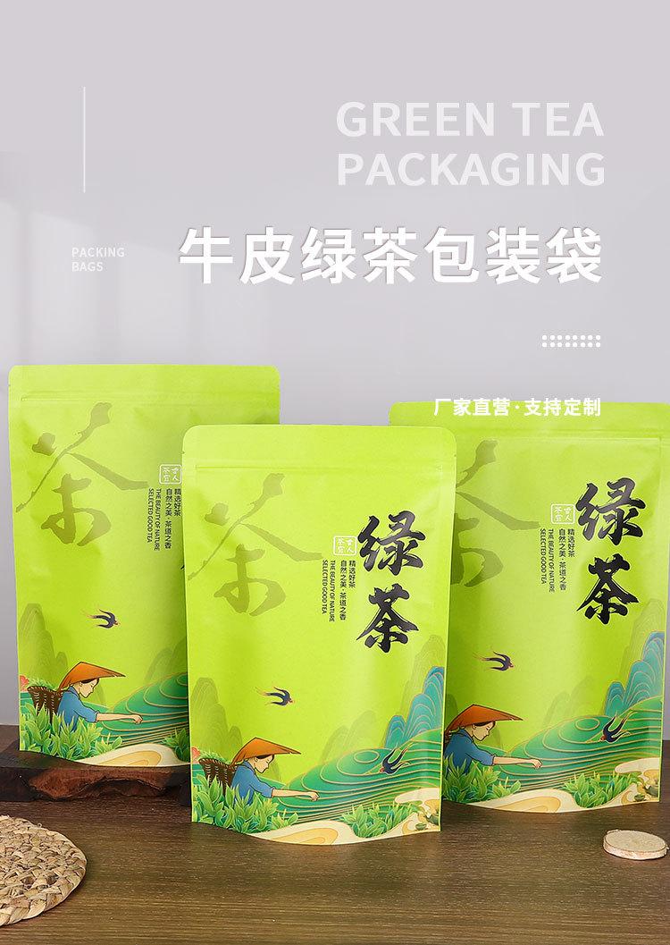 Bolsa de embalaje de té de papel kraft engrosada universal de alta calidad punta lanosa Biluochun media libra sellada autosellante bolsa de té verde