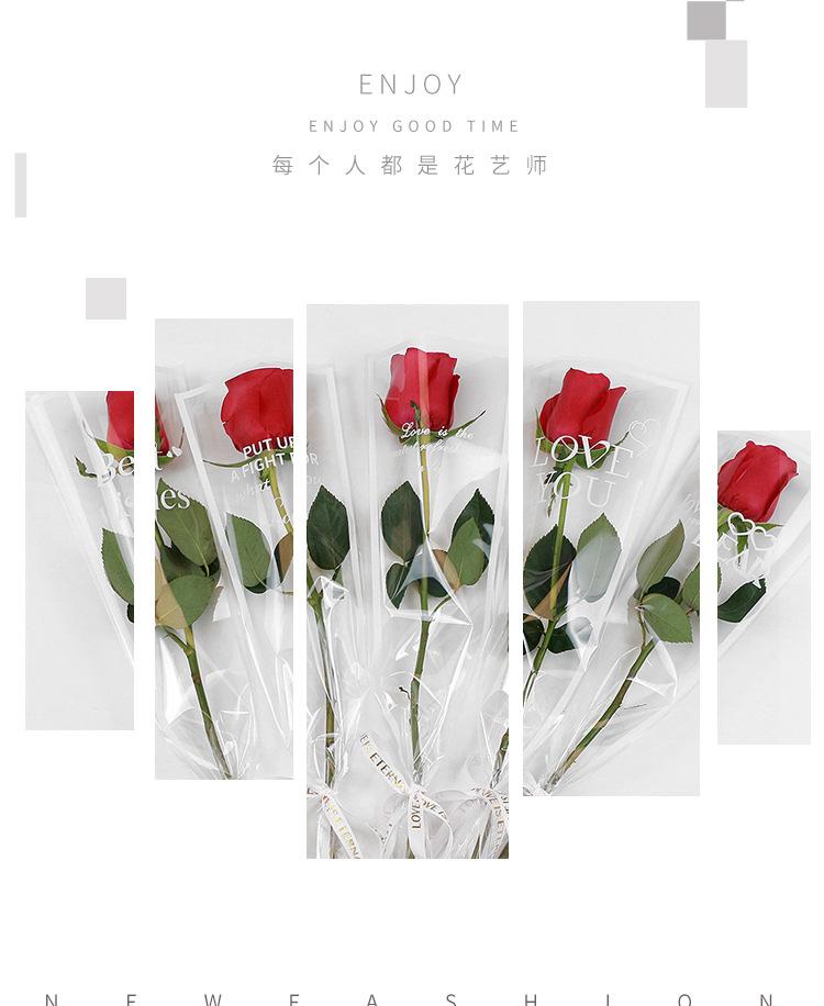 Bolsa de embalaje para una sola flor, bolsa multijuego de rosas, celofán transparente, material para envolver un solo ramo floral