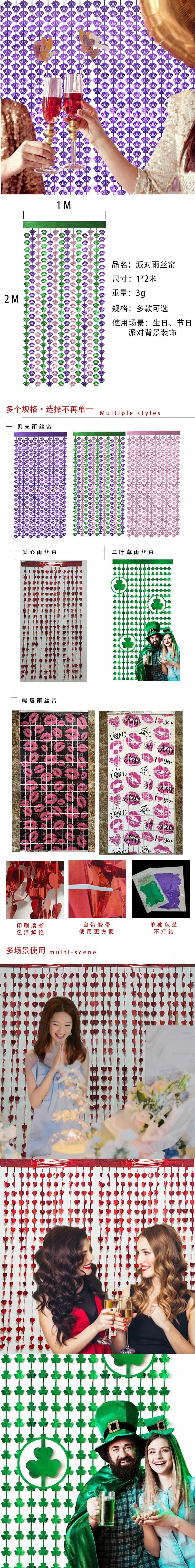 Cortina de seda de lluvia de la serie Cross-Border Holiday para el Día de San Valentín, festival irlandés, fiesta de cumpleaños, bar, decoración de fiesta, cortina de seda de lluvia