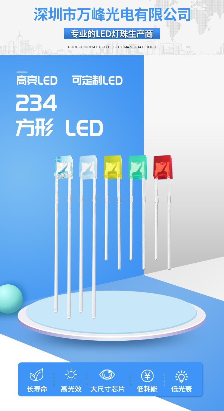 Cuentas de Lámpara LED Cuadradas 234 Luz Roja, Amarilla, Azul, Verde y Blanca 2X3X4 Diodo Emisor de Luz Cuadrado Cuentas de Lámpara LED Plug-In