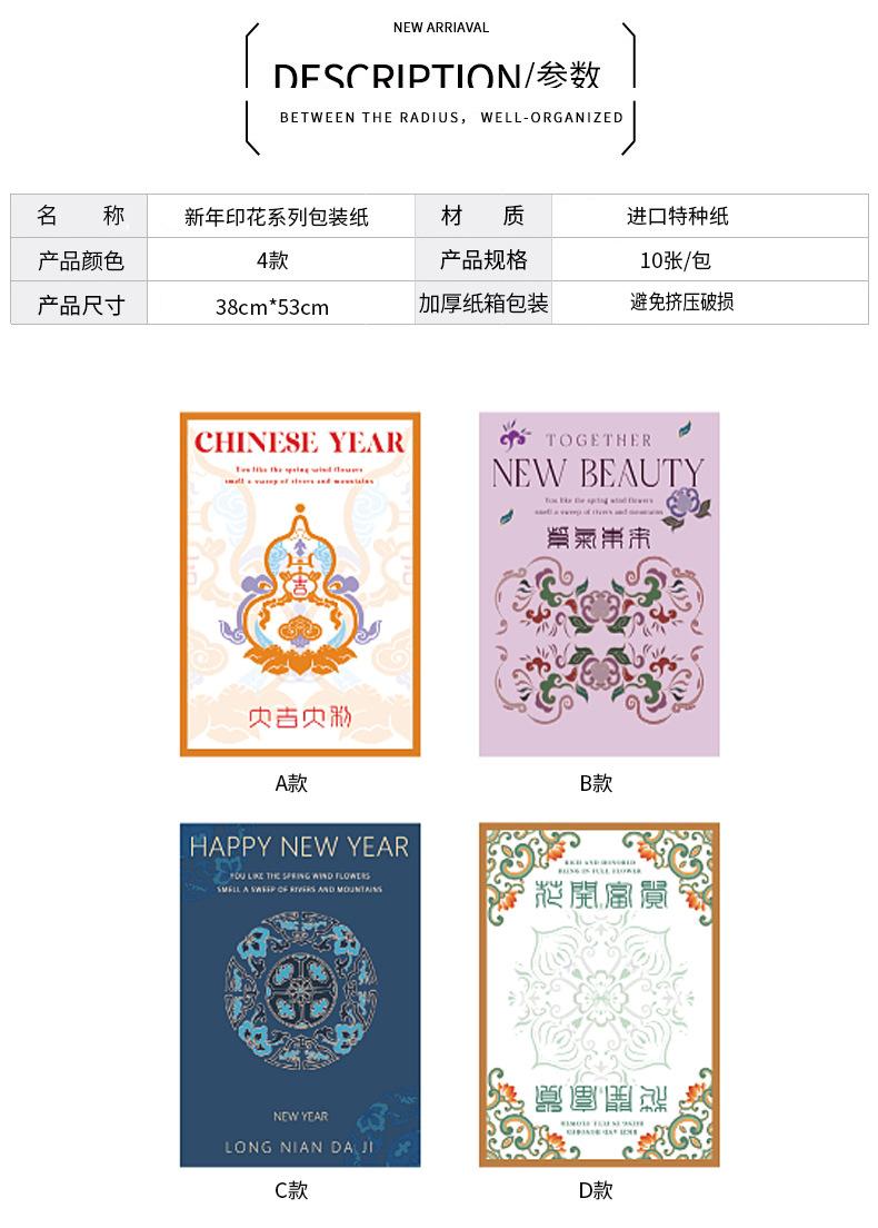 New Year printing series wrapping paper (10 sheets/pack)-D, New Year Printing Series Wrapping Paper (10 sheets...