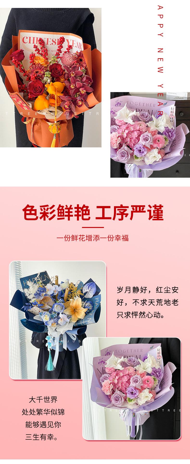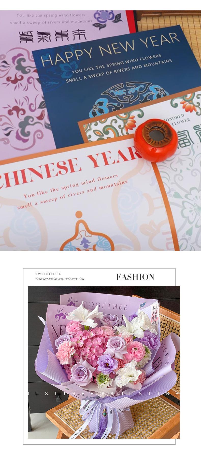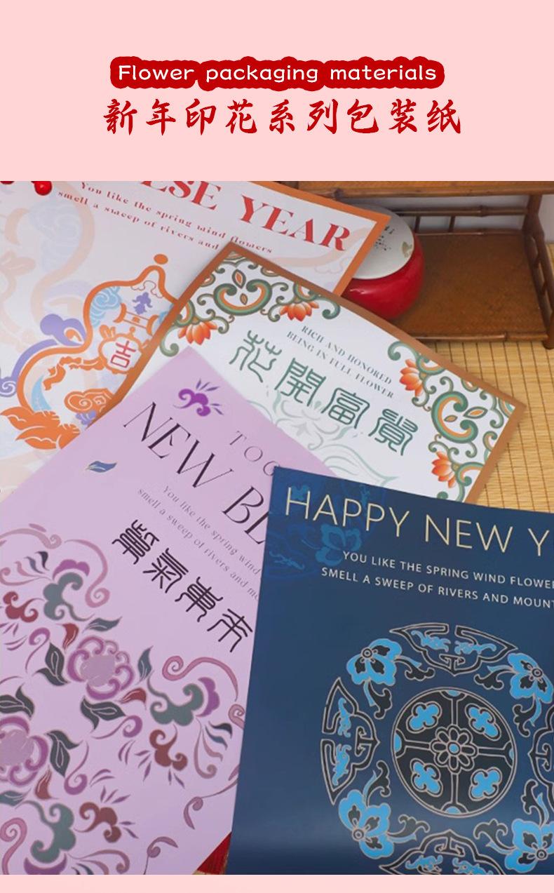 Papel de regalo de la serie de impresión de Año Nuevo Flower Companion Shadow Papel de regalo de la serie de estilo nuevo chino Papel de regalo de ramo de flores florales
