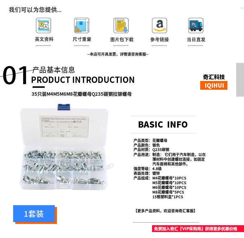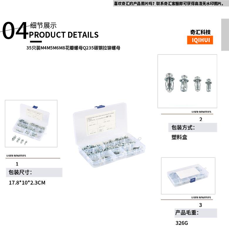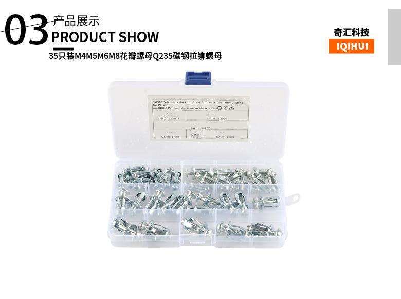 Suministro de fábrica, 35 piezas, perno de remache M4M5M6M8, tuerca de pétalo Q235, tuerca de remache de acero al carbono