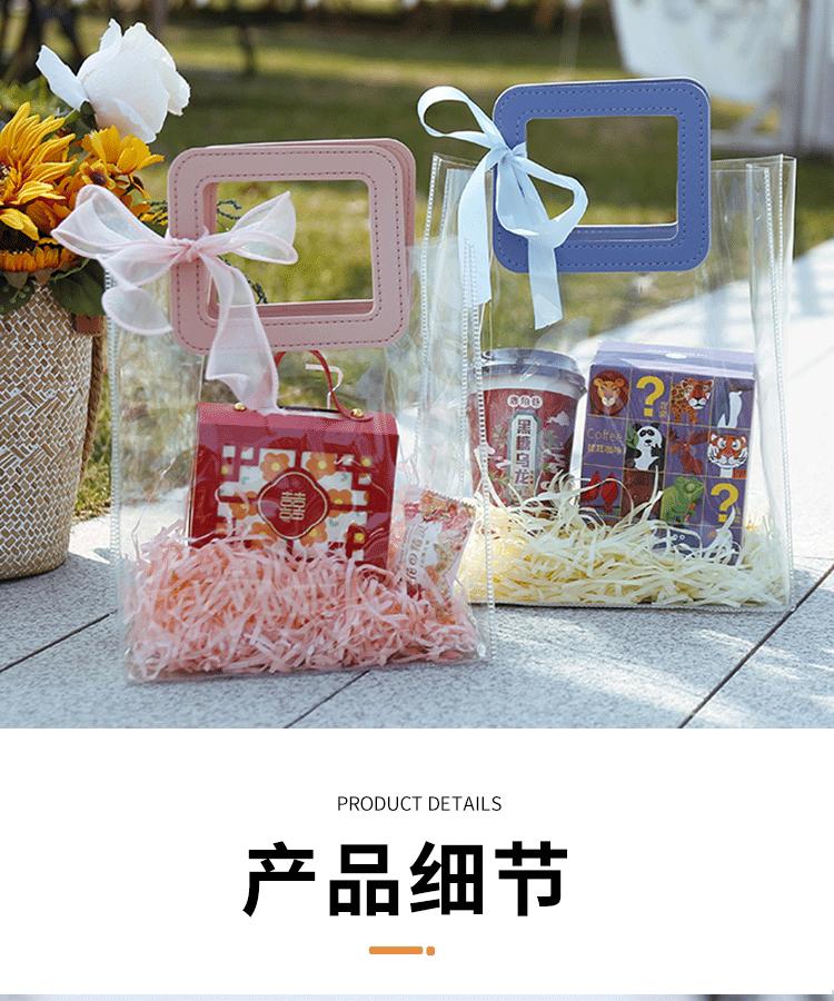 Bolsa de regalo transparente portátil de PVC para regalo de boda, bolsa de plástico para dulces, embalaje al por mayor