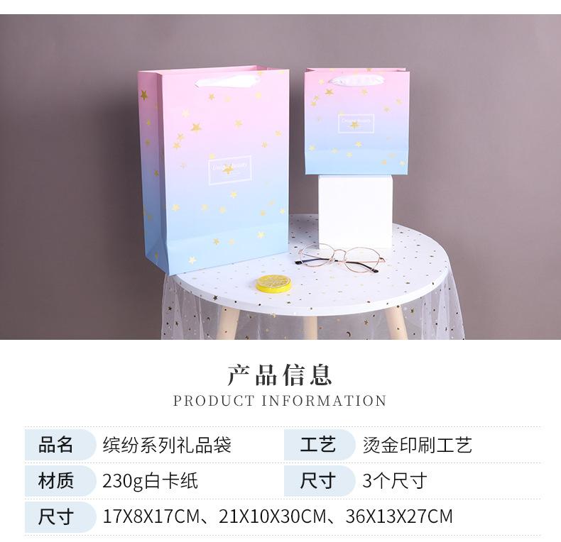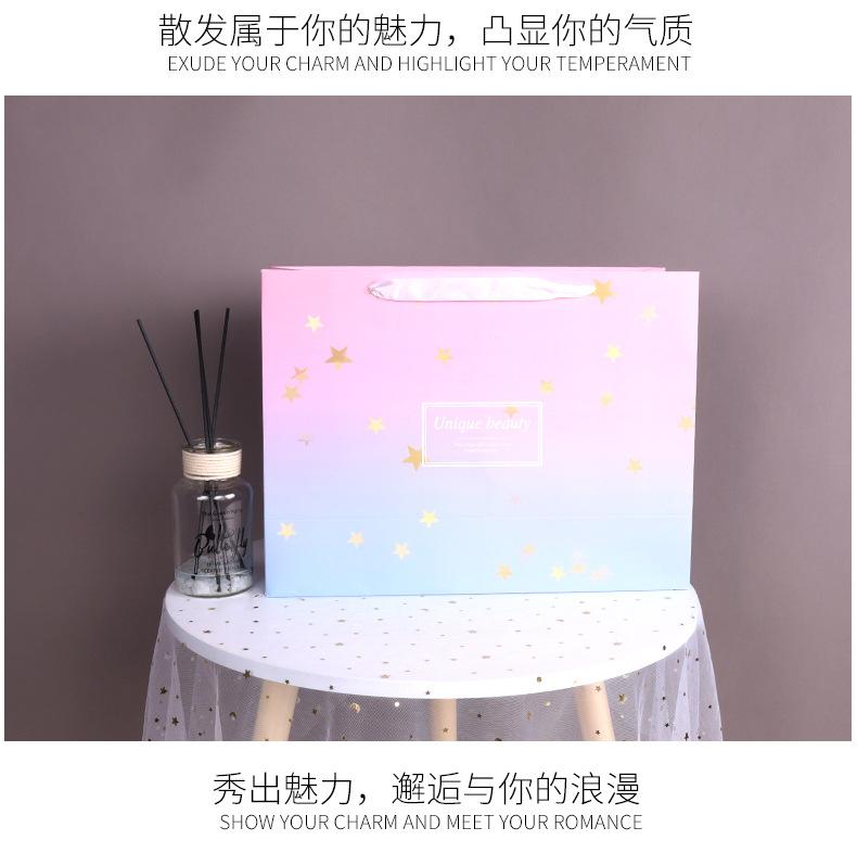 Nueva llegada bolsa de regalo color degradado bolso pequeño fresco bolsa de embalaje para regalo de cumpleaños de cosméticos papel horizontal