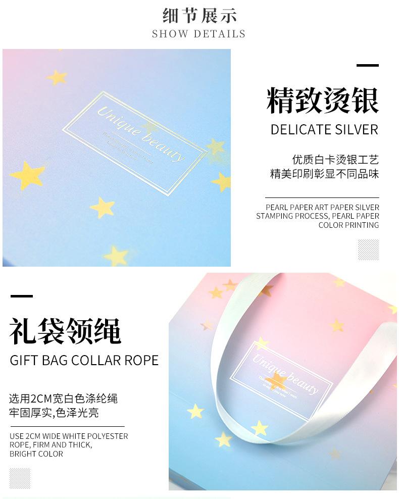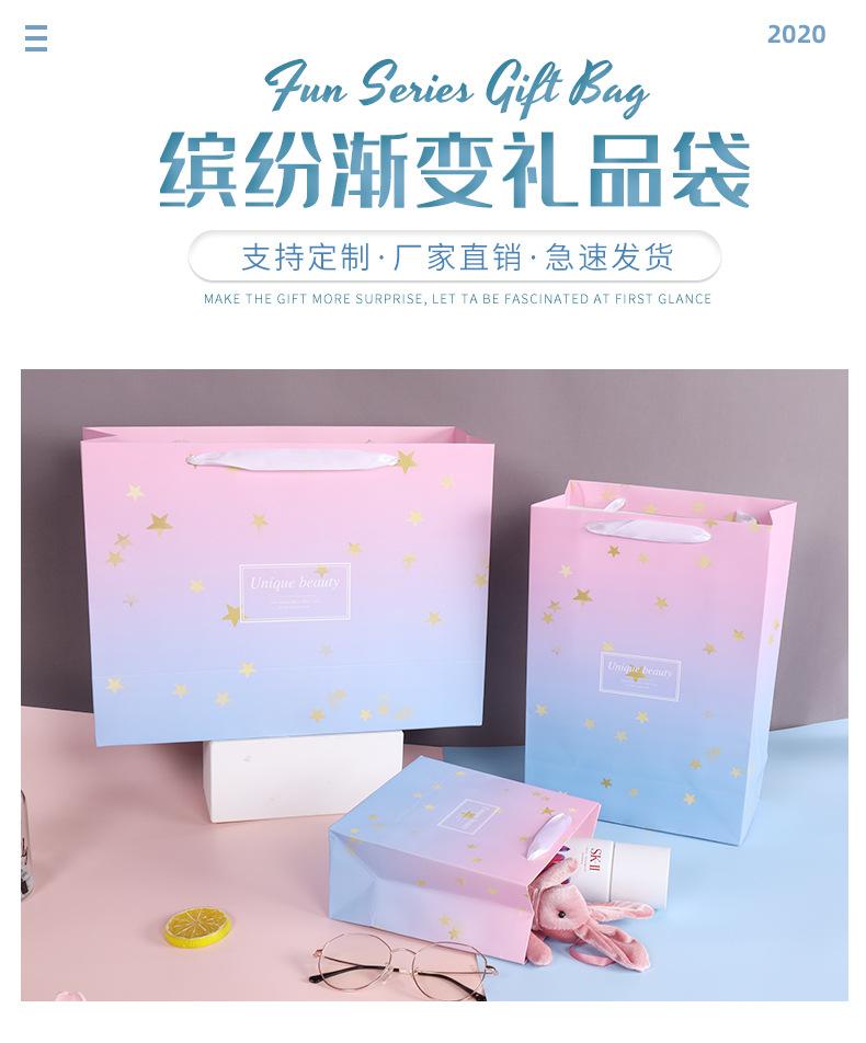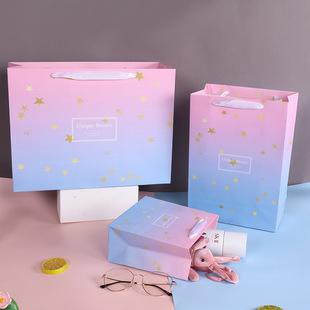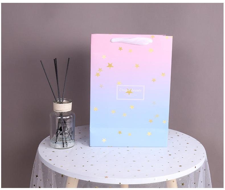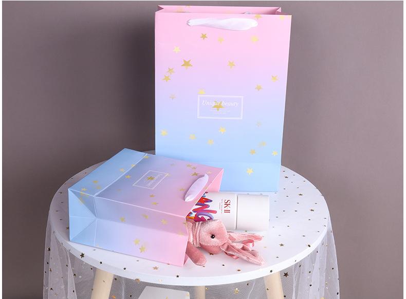 Bolsa de regalo de color degradado de nueva llegada, bolso de mano pequeño y fresco, bolsa de embalaje para regalo de cumpleaños de cosméticos, bolsa de papel horizontal