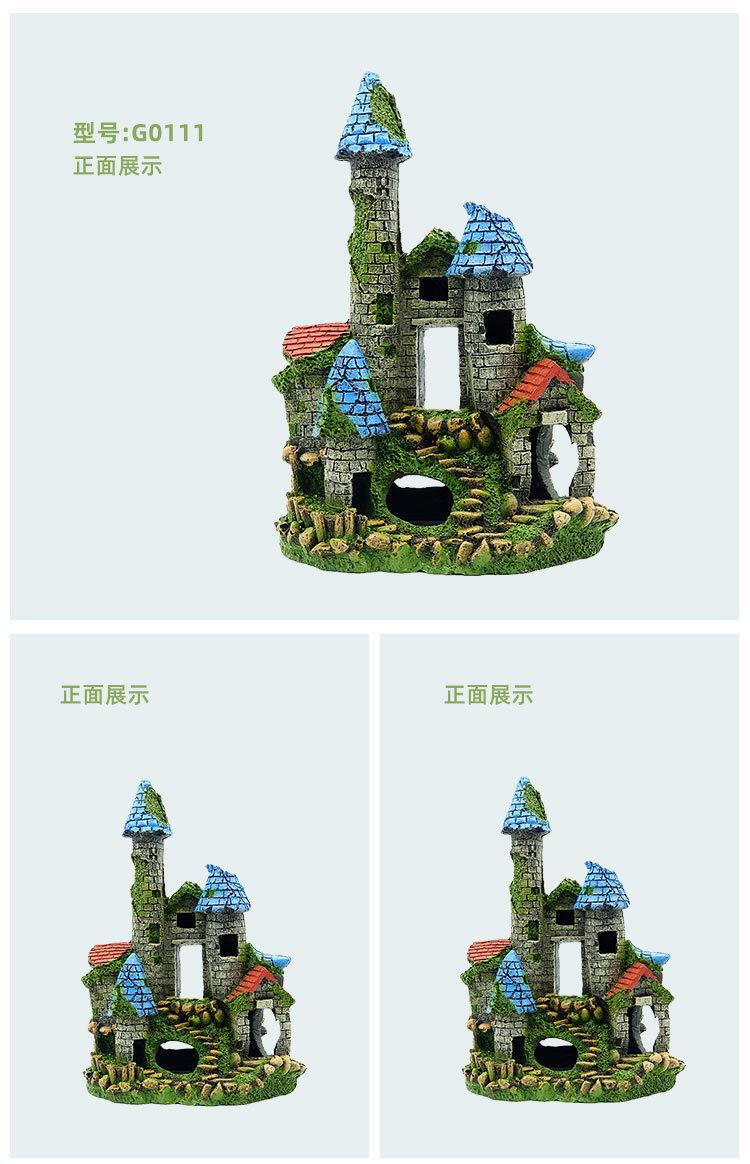 Simulación de paisaje de acuario, hierba acuática, decoración de pecera, artesanías, adornos de castillo europeo, decoración de reliquias de castillo