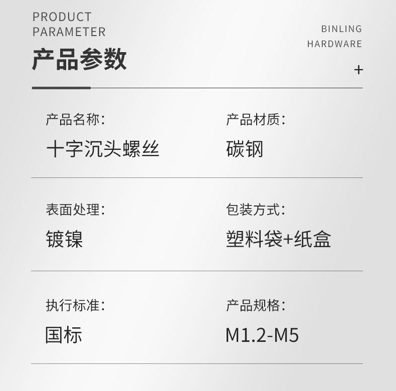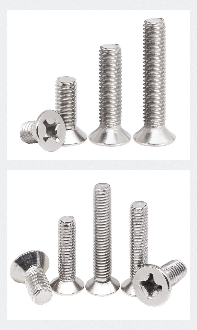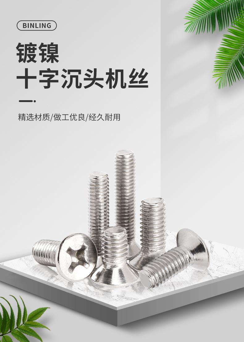 Tornillo de cabeza plana avellanada con cruz de hierro niquelado, tornillo de máquina de cabeza plana KM, perno pequeño de tornillo de cola plana M1.2M2M3M4M5
