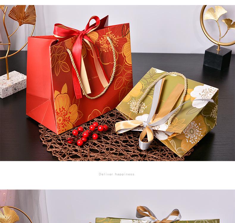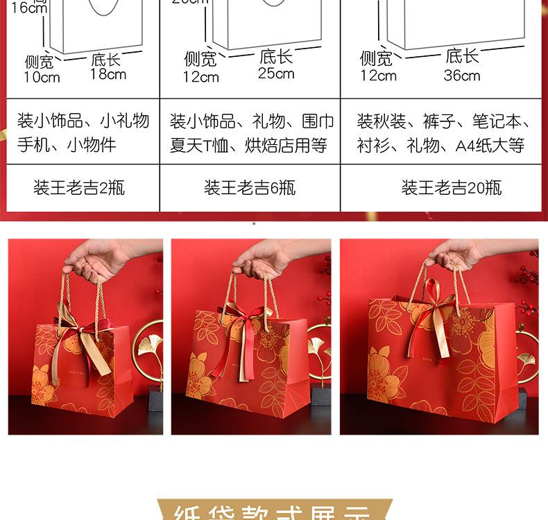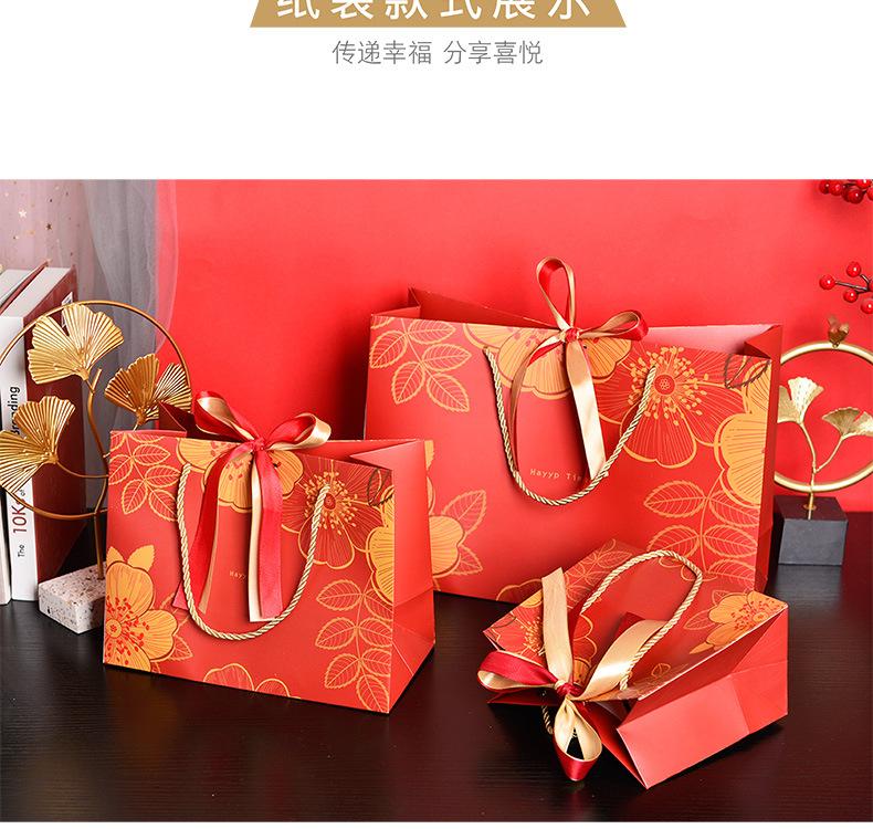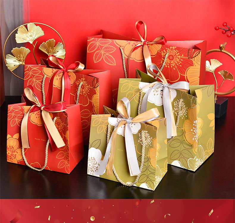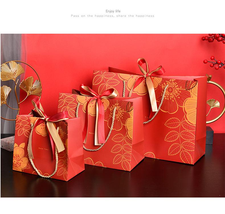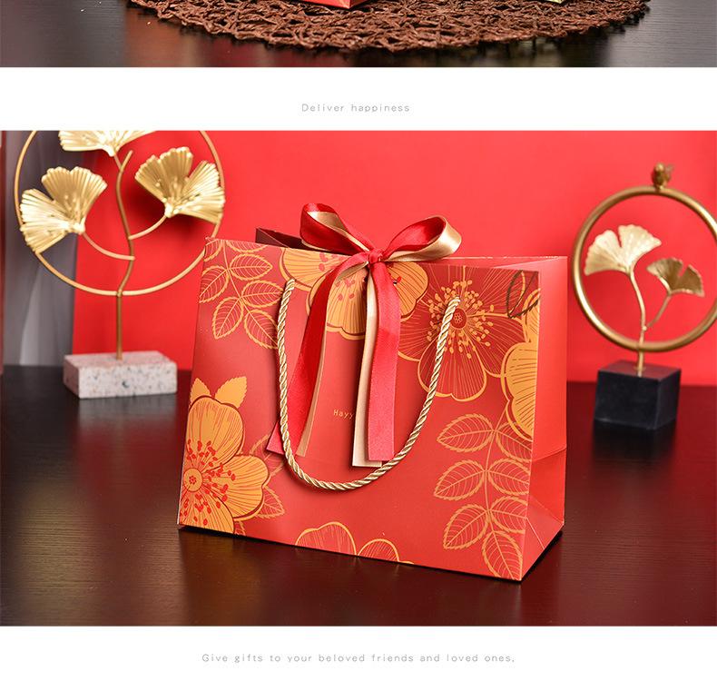 Bolsa de Regalo Happy Time Tendencia Nacional Roja Bolsa para Empaque de Flores Bolso de Mano de Regalo Bolsa de Papel Bolsa para Dulces de Boda con Doble Seda