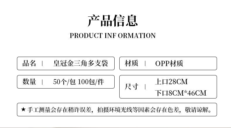 Jubilee Flower Nong Triángulo Dorado Bolsa Múltiple Plástico Bolsa Opp Papel para Envolver Flores Simple Impermeable DIY Hecho a Mano Florería