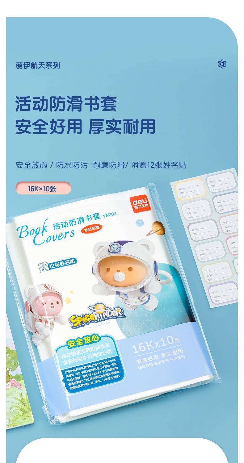 Forro transparente Deli A4/16k para libros de estudiante, bolsa de protección ambiental para libros, actividad, antideslizante, impermeable, etiquetas para nombres gratis, 10 piezas