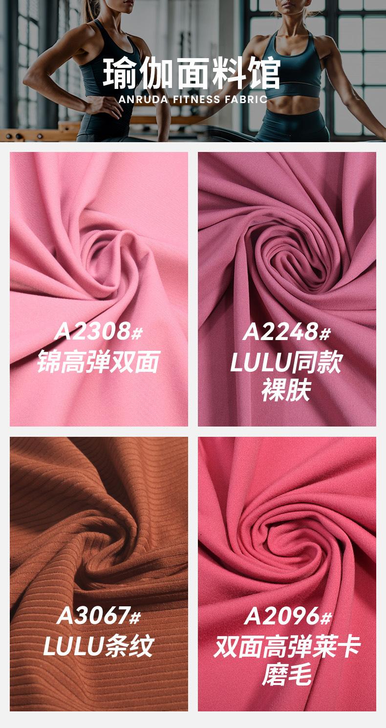 Punto al por mayor 210g tela de alta gama para pantalones deportivos de yoga tejido de alta elasticidad lulu con tela de doble cara de nailon