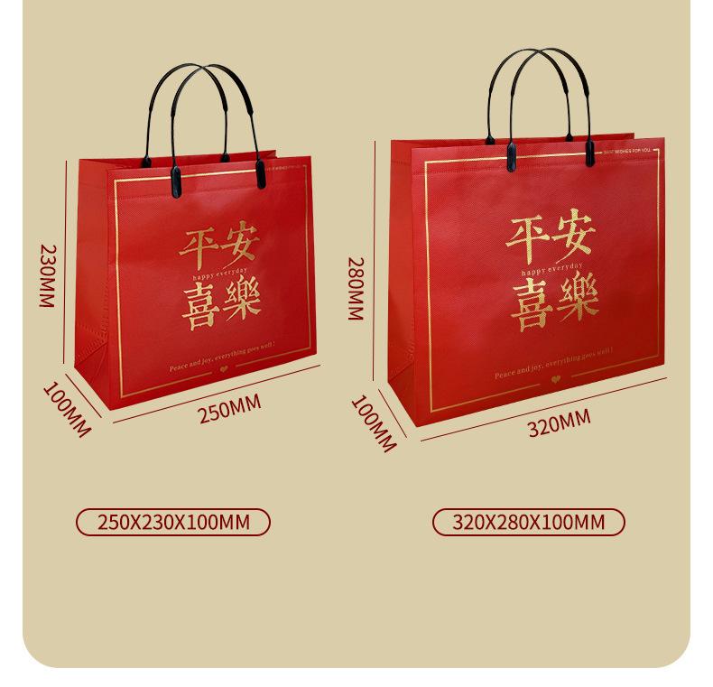 Chinese red-peace and joy [non-woven portable]; medium (32*28*10)