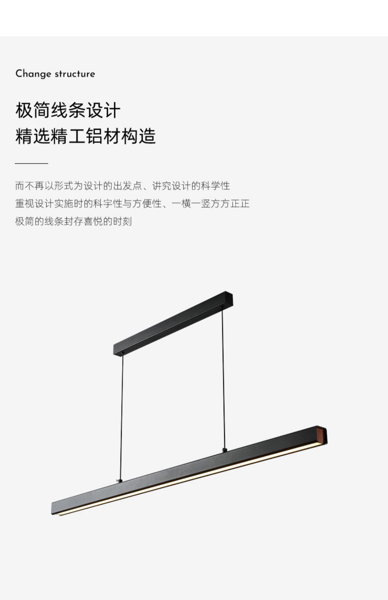 Lámpara de araña de restaurante moderna minimalista de diseño para oficina, una palabra led nórdica minimalista para mesa de comedor, bar, lámparas de tira larga