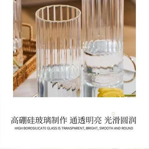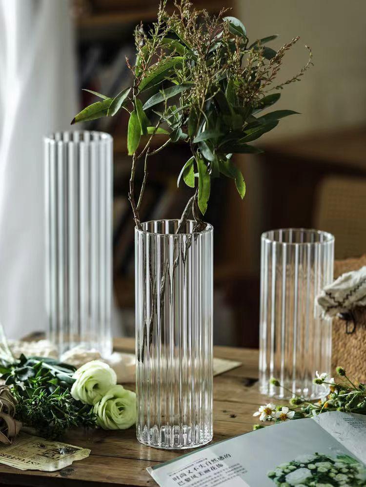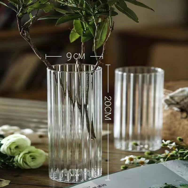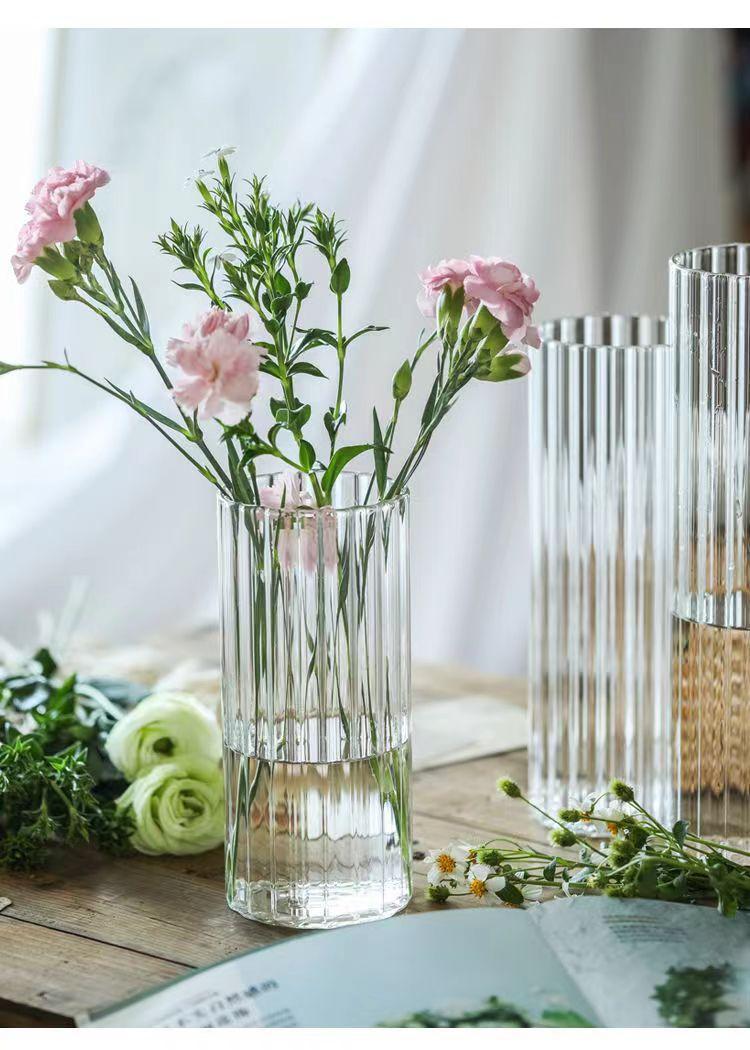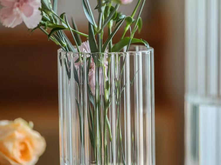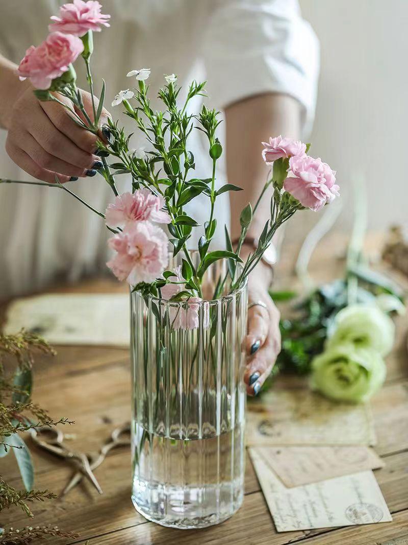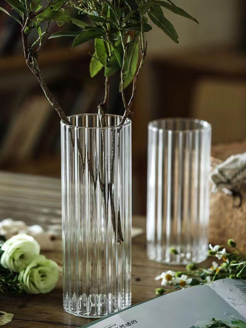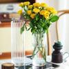 Jarrón con diseño de flores de vidrio de grano vertical, adornos de escritorio, maceta pequeña, botella de vidrio recta, botella para planta hidropónica, botella ecológica