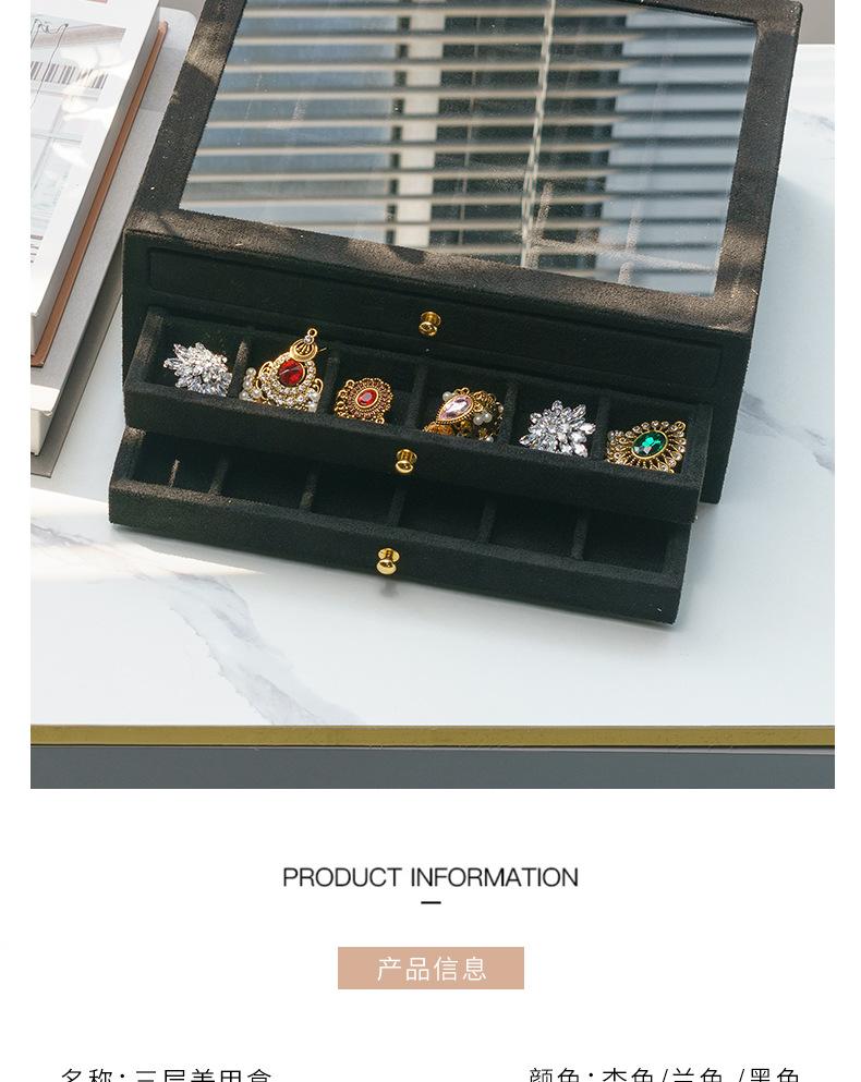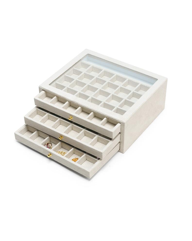 Caja de Joyería de Terciopelo Multicapa, Caja Exhibidora de Arte de Uñas con Tapa de Vidrio, Caja Pequeña para Almacenamiento de Joyería, Caja para Diamantes, Caja de Joyería