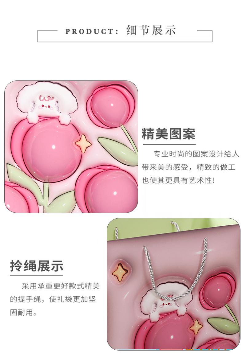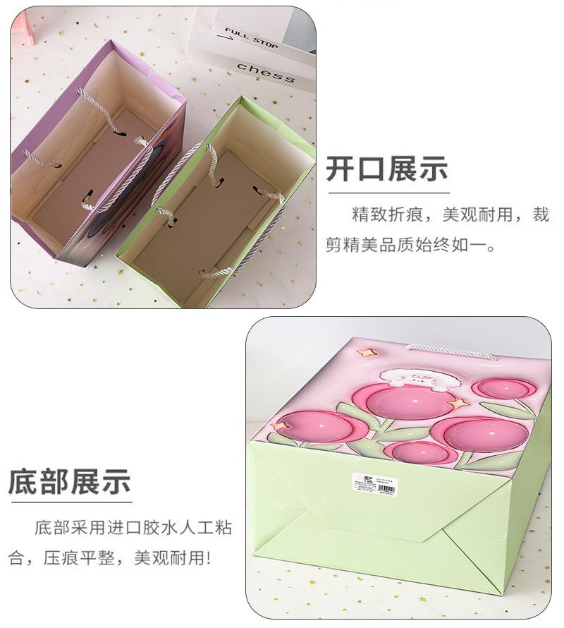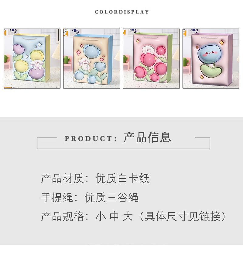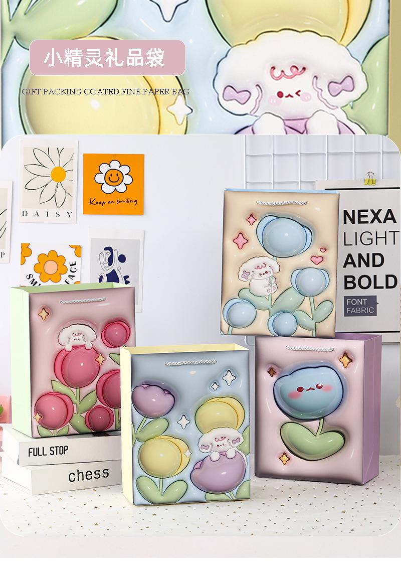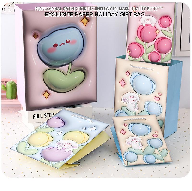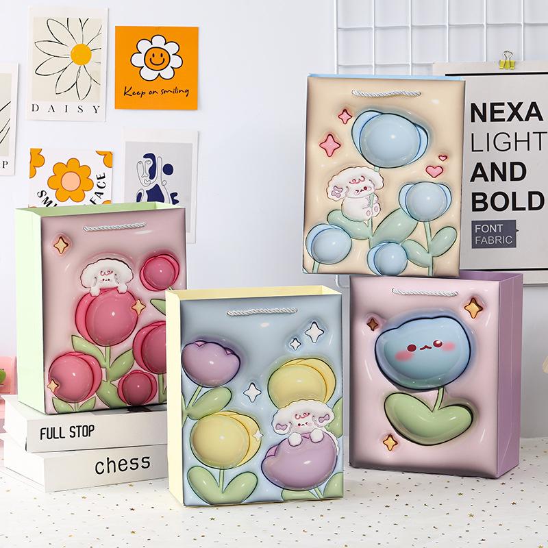Bolsa de Regalo de Dibujos Animados Flor Animal Gran Capacidad Portátil Bolsa de Papel en stock Ins Alto Valor de Color Cartulina Blanca Engrosada Bolsa de Regalo