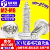 Tornillo autorroscante de cabeza redonda con columna de acero inoxidable 201, tornillo de cabeza plana con ranura de ciruela, M2/M3/M4/M5