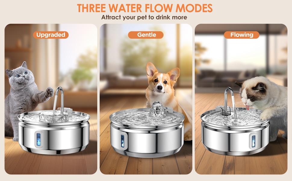 La fuente para mascotas que funciona con tazón creará un ambiente "relajante" de sonido de jardín acuático, además del modo de bebida de fuente de burbujas y grifo, la fuente de agua automática para perros puede satisfacer la necesidad de diferentes mascotas y aumentar la diversión de las mascotas.