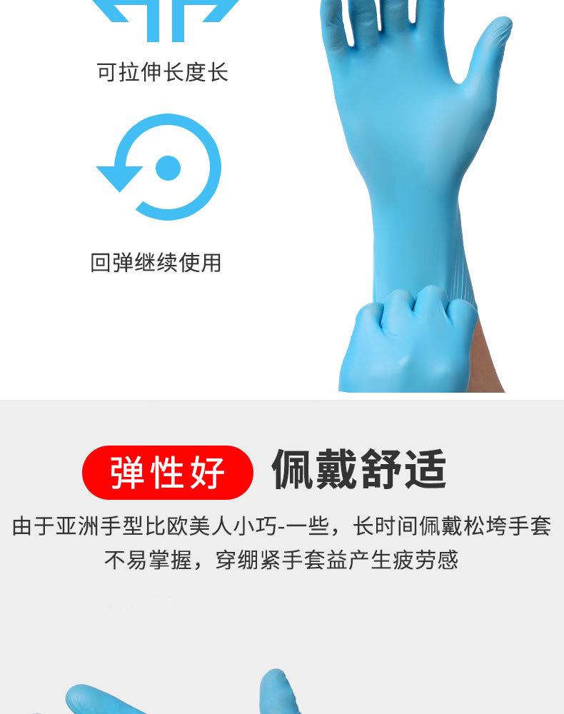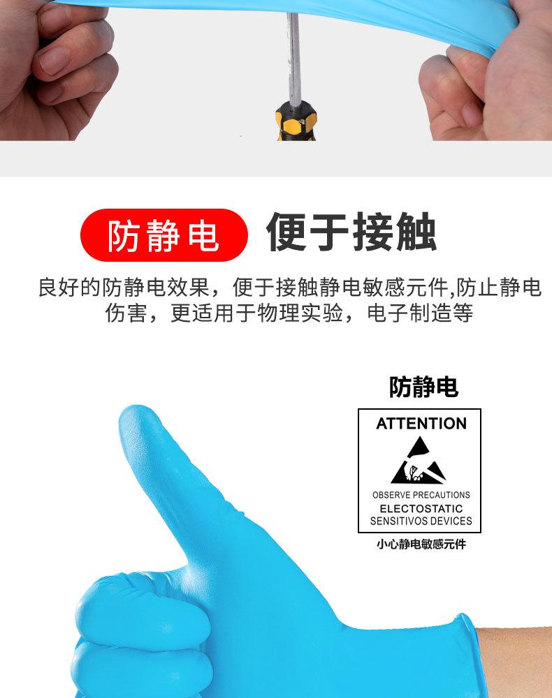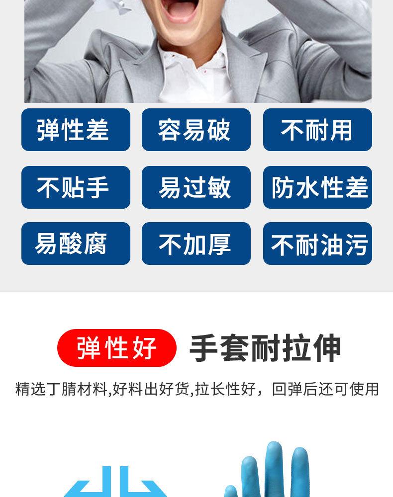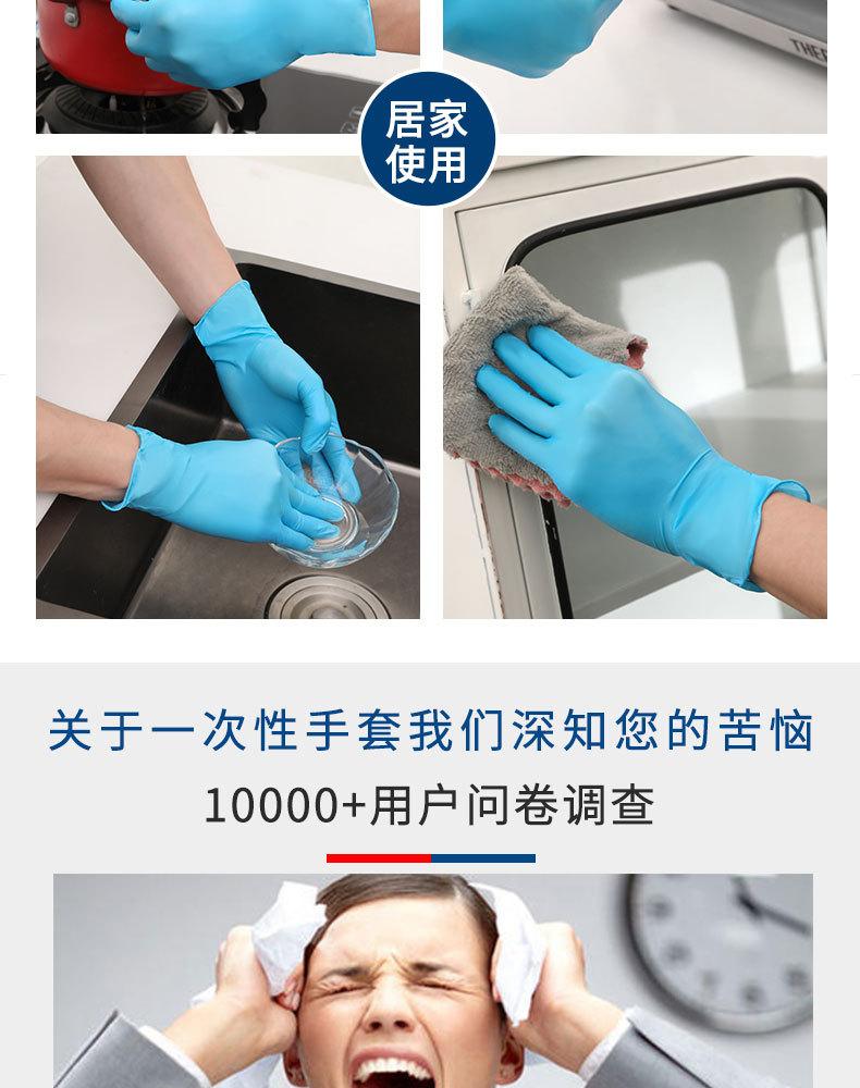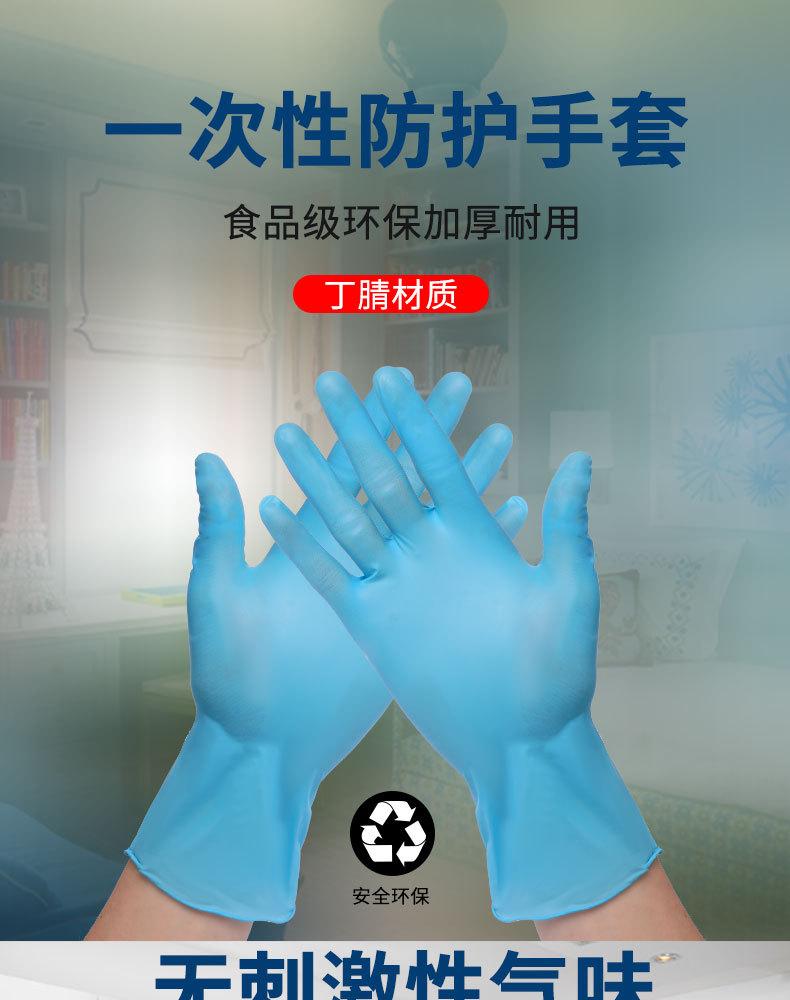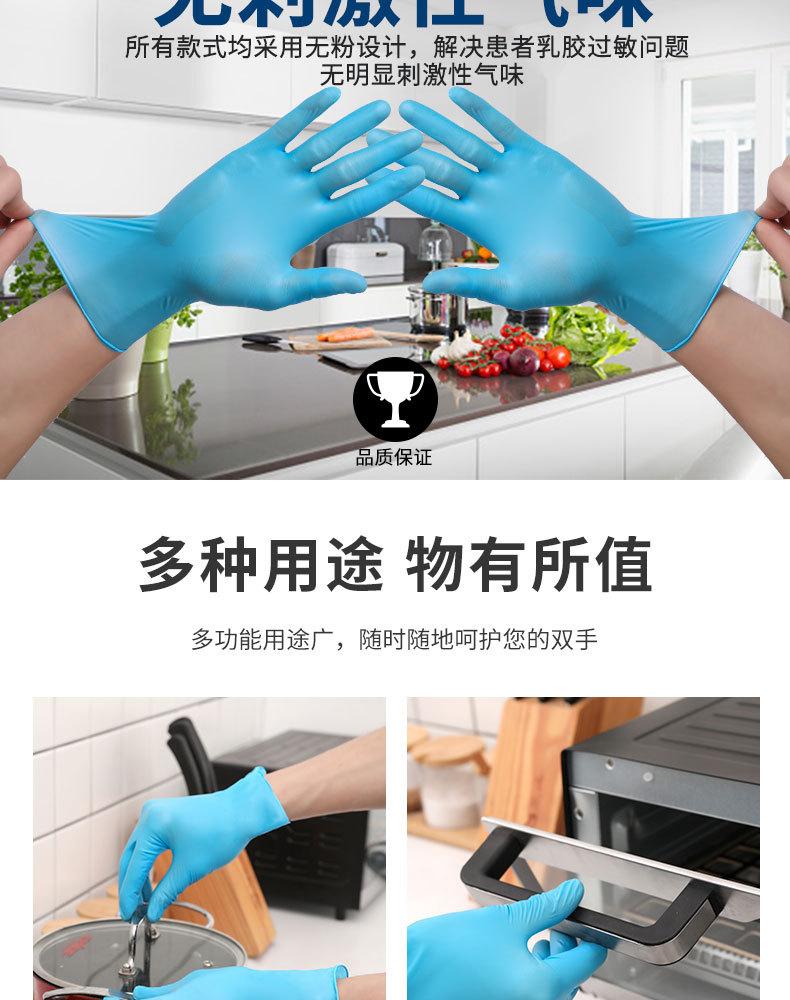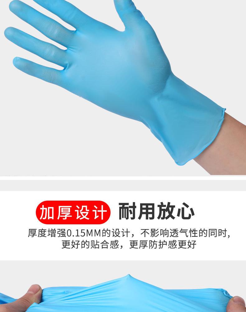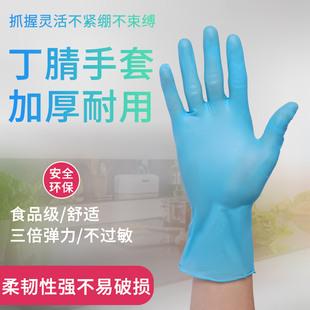 Guantes desechables de nitrilo gruesos, protección laboral, paquete de 100, guantes azules Ding Qing de grado alimenticio para uso doméstico.