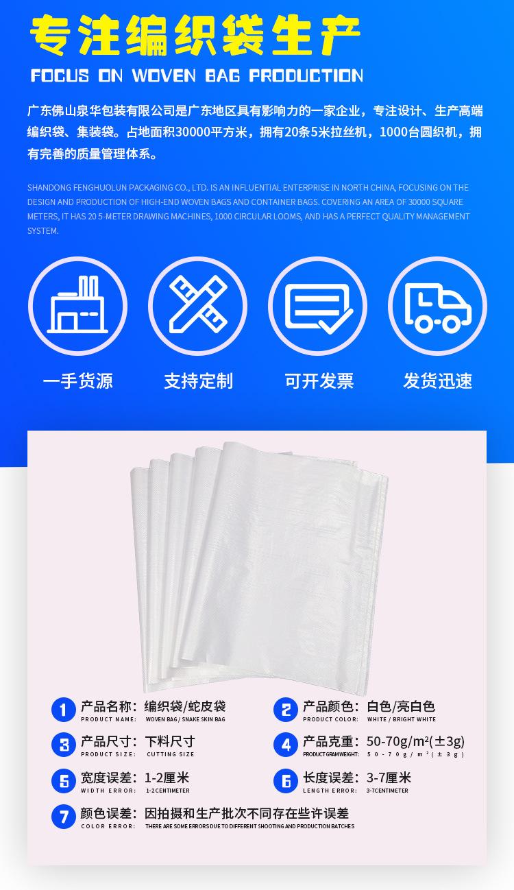 Bolsa tejida de plástico blanco para harina de arroz, gran capacidad, para envasado de fertilizantes y alimentos, de piel de serpiente, venta al por mayor