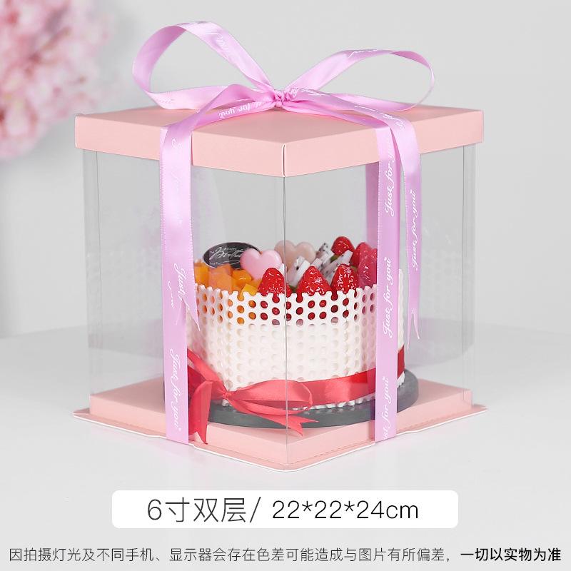 Caja de Embalaje para Pastel de Cumpleaños Transparente al por Mayor Caja de Regalo Snack Capa Sencilla y Doble Empaque Portátil para Pastel Transfronterizo